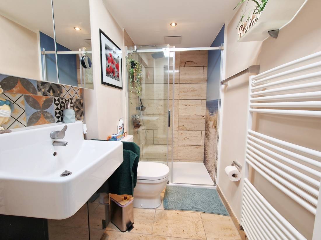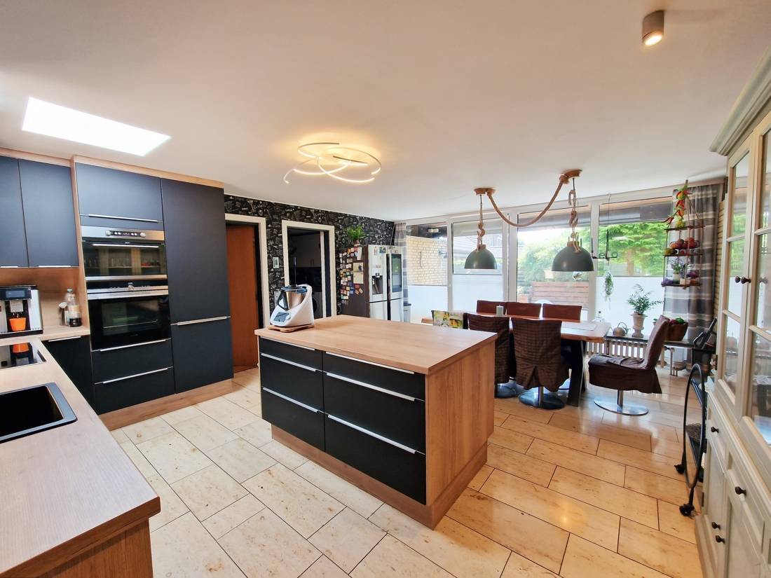 Herzstück des Hauses ist die offene Wohnküche mit Kochinsel (Bj. 2021), die fließend in den Essbereich übergeht und direkten Zugang zur Terrasse und in den gepflegten Garten bietet. Das angrenzende lichtdurchflutete Wohnzimmer mit integriertem Kaminzimmer-Leseecke sorgt für gemütliche Abende und stilvolles Wohnen. Eine großzügige Diele mit Oberlicht und Garderobe, ein modernes Duschbad sowie ein Arbeitszimmer runden den Wohnbereich ab.
