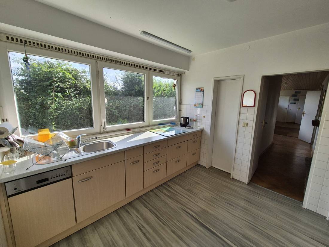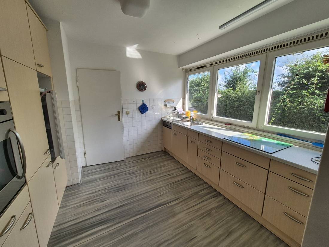 Angrenzend befindet sich eine gut erhaltene, moderne Einbauküche mit großer Fensterfront, hier sollte die Zubereitung von feinen Gerichten eine wahre Freude sein. Eine kleine Speisekammer bietet Platz für Ihre Vorräte.