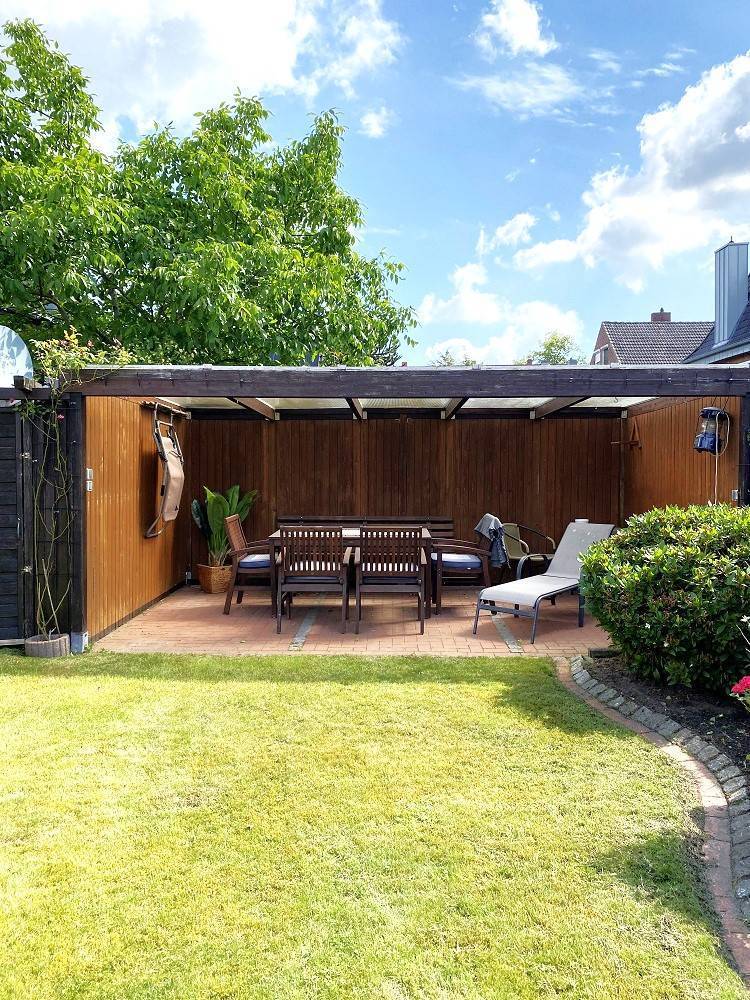 Auf 2 Terrassen , eine direkt am Haus die andere im Garten (beide überdacht, siehe Fotos) kann man es sich gut gehen lassen.