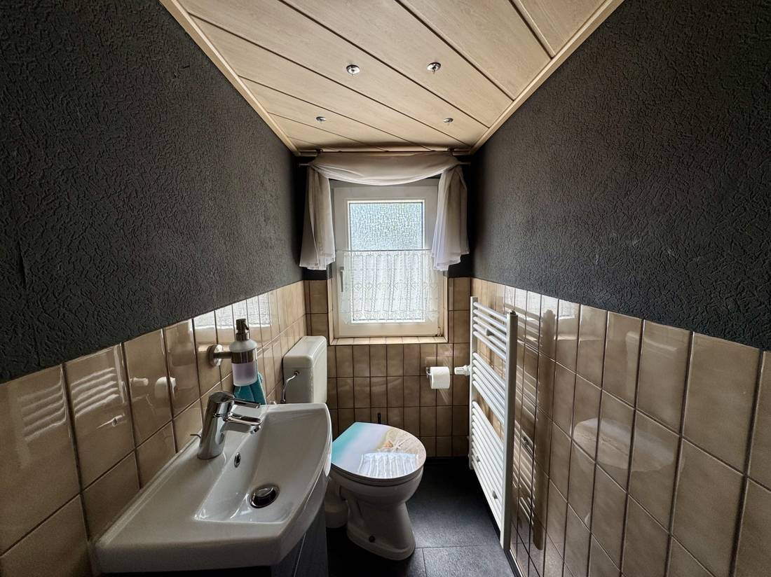 Im Herzen des Hauses befindet sich der Kaminofen, über den das gesamte Gebäude beheizt wird – ein nachhaltiges und zugleich behagliches Heizsystem. Die Warmwasserversorgung erfolgt effizient über einen Durchlauferhitzer.