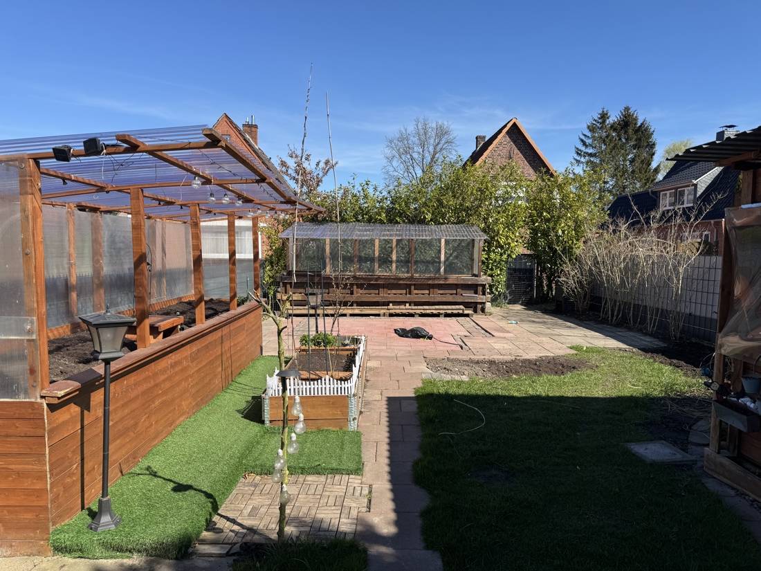 Der Garten ist ein wahres Refugium für Naturfreunde: Mit einem gemütlichen Wintergarten, einer sonnigen Terrasse, Hochbeeten und Obstbäumen bietet er Raum für Entspannung und kleine Auszeiten im Grünen. Spielen Sie mit Ihrem grünen Daumen und gestalten sich Ihr kleines Paradies. Das eingezäunte Grundstück schenkt Sicherheit für Kinder und Haustiere.