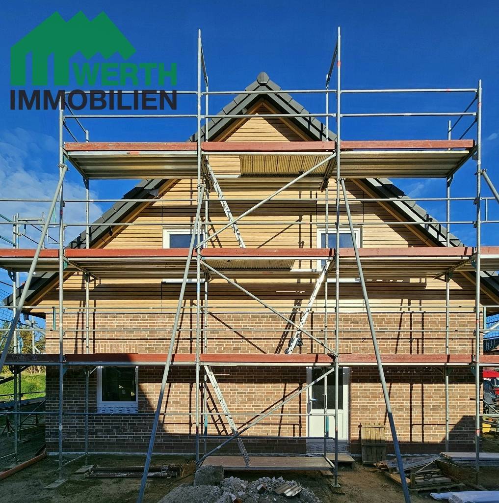 Stand Oktober 2025: Das Dach wird gerade gedeckt, innen trocknet der Putz. S. auch Exposé.