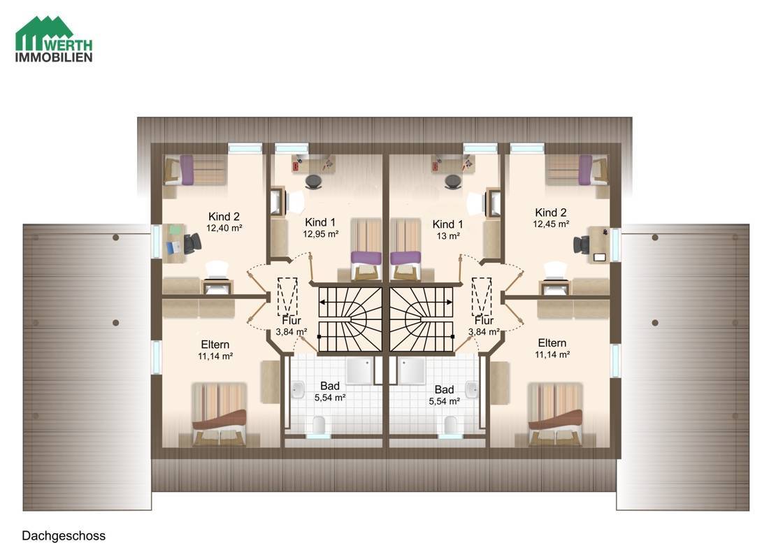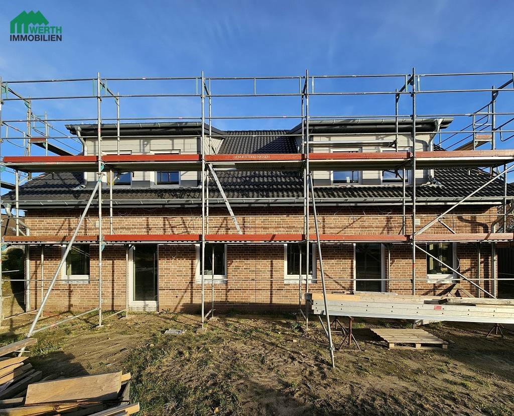 Neubau Doppelhaus nach KfW-40-Standard mit 2 Doppelhaushälften. Praktisch: Jede Doppelhaushälfte hat Ausgänge an drei Hausseiten.