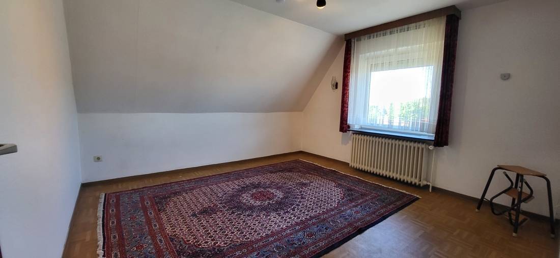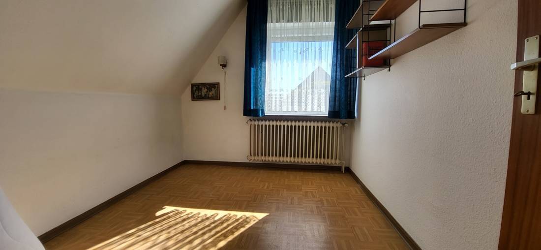 Im Dachgeschoss verfügt das Haus über ein Schlafzimmer, zwei Kinderzimmer und ein Wannenbad. Alle Fenster bieten Außenrolladen – im Erdgeschoss elektrisch.