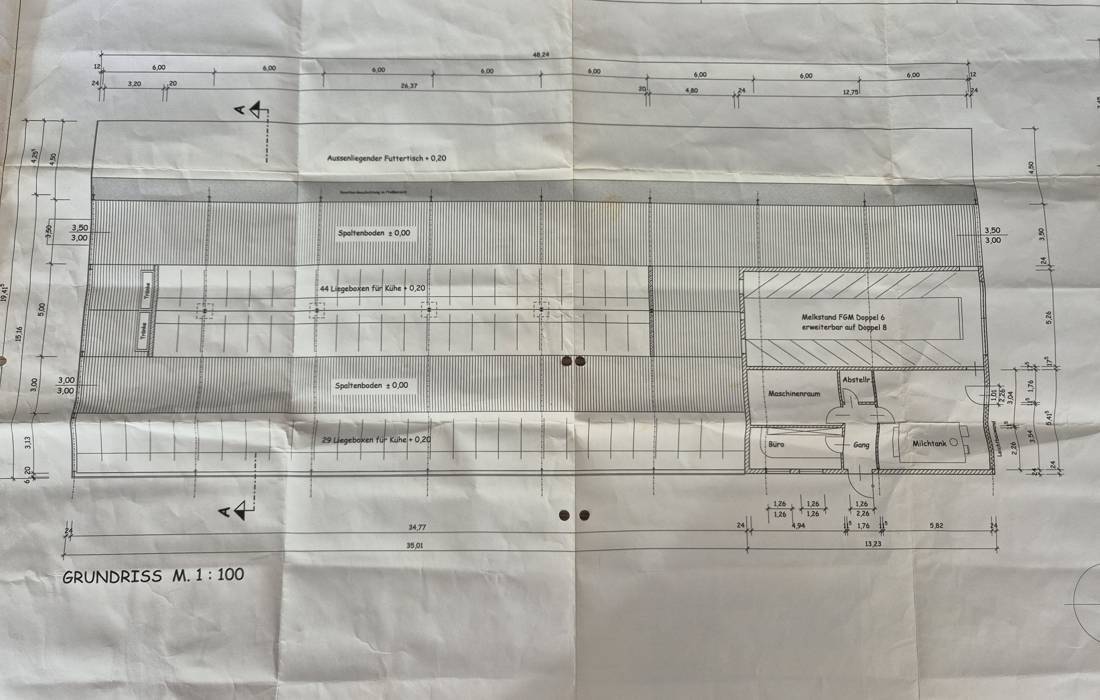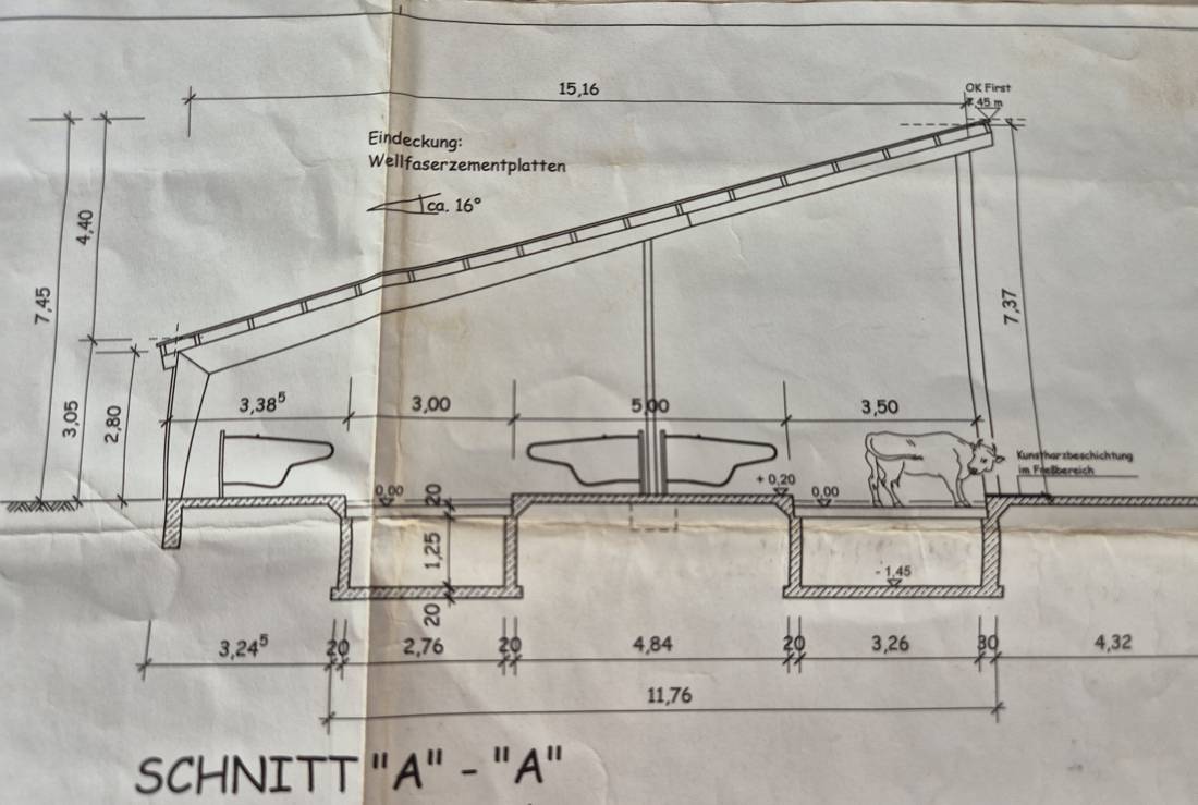 Im Jahr 2012 wurde dieser großzügig konzipierte Milchviehlaufstall errichtet. Die Anlage verfügt über einen funktionalen Melkstand sowie ein separates Milchlager, das sich bei Bedarf flexibel, beispielsweise als Büro oder vergleichbare Nutzungseinheit, umgestalten lässt. Ein WC mit Waschbecken ist ebenfalls vorhanden.