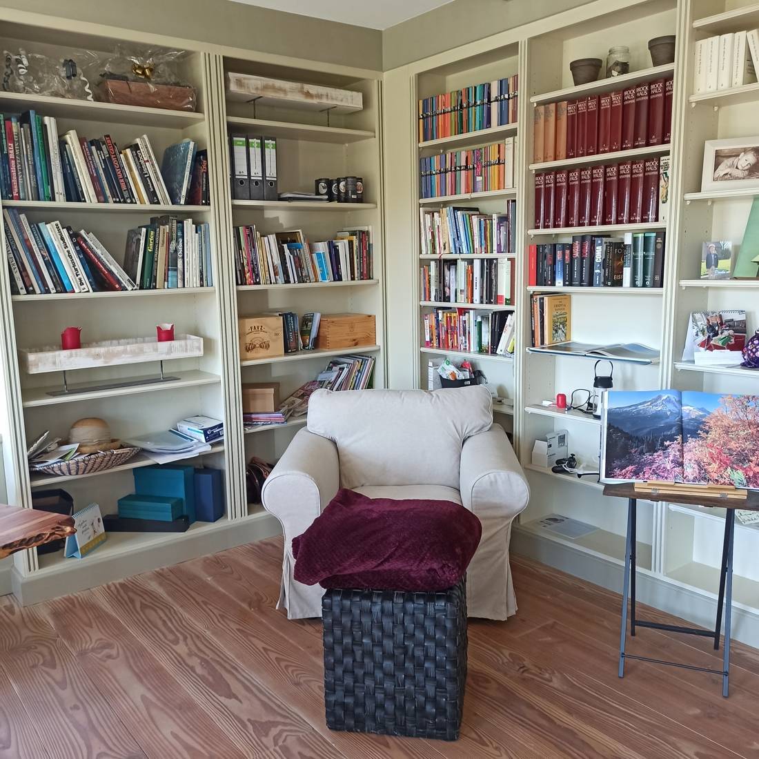 In den beiden Bibliotheken sowie im Wohnzimmer im unteren Bereich befinden sich jeweils Kaminöfen.