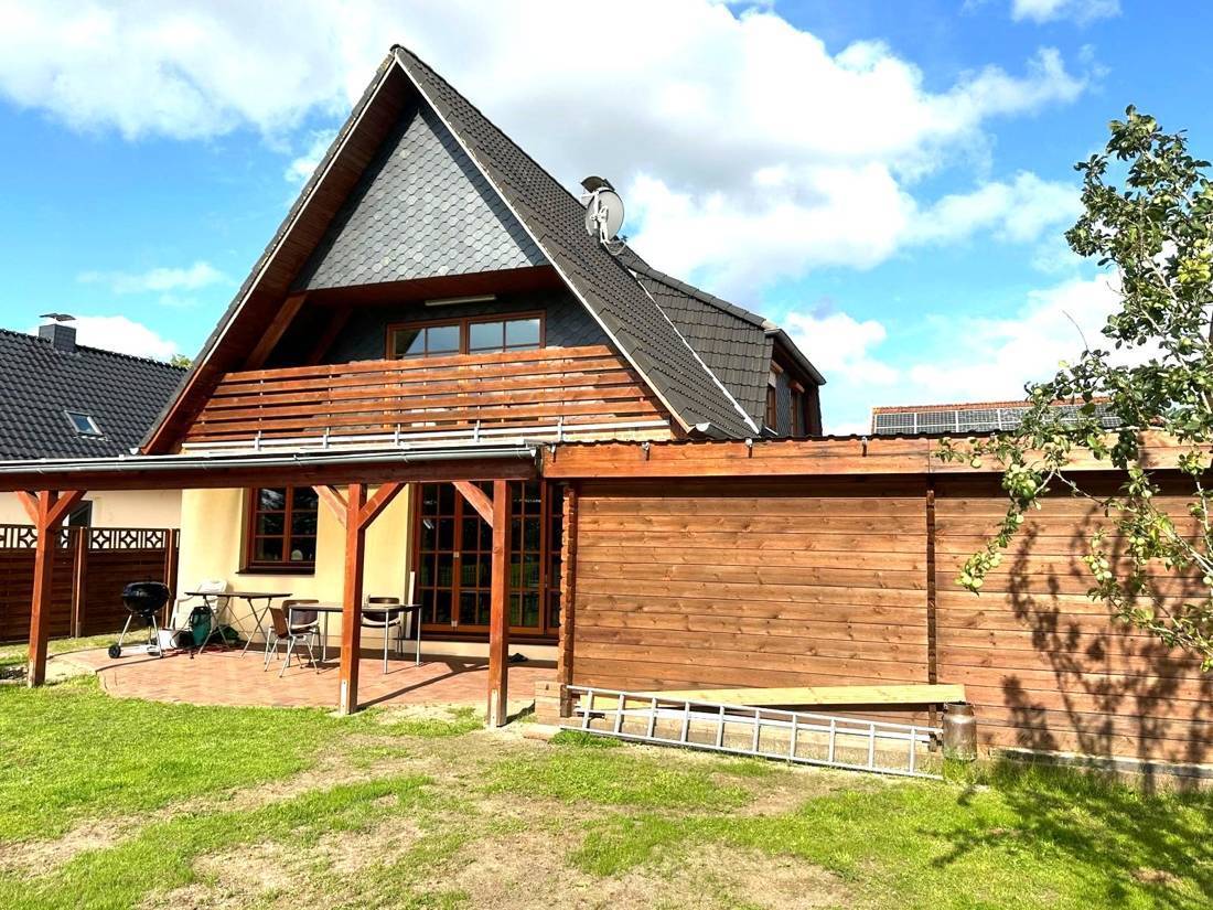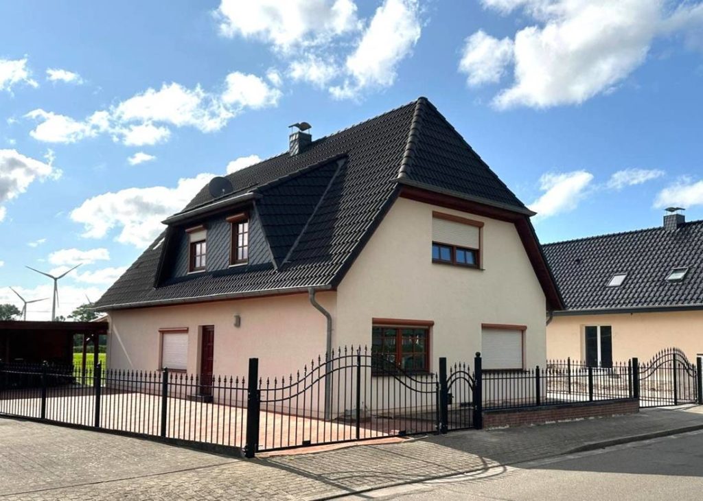 Das Carport und die Auffahrt bieten Autostellplätze und der Garten ermöglicht einen freien Ausblick über Wiesen und Felder.
