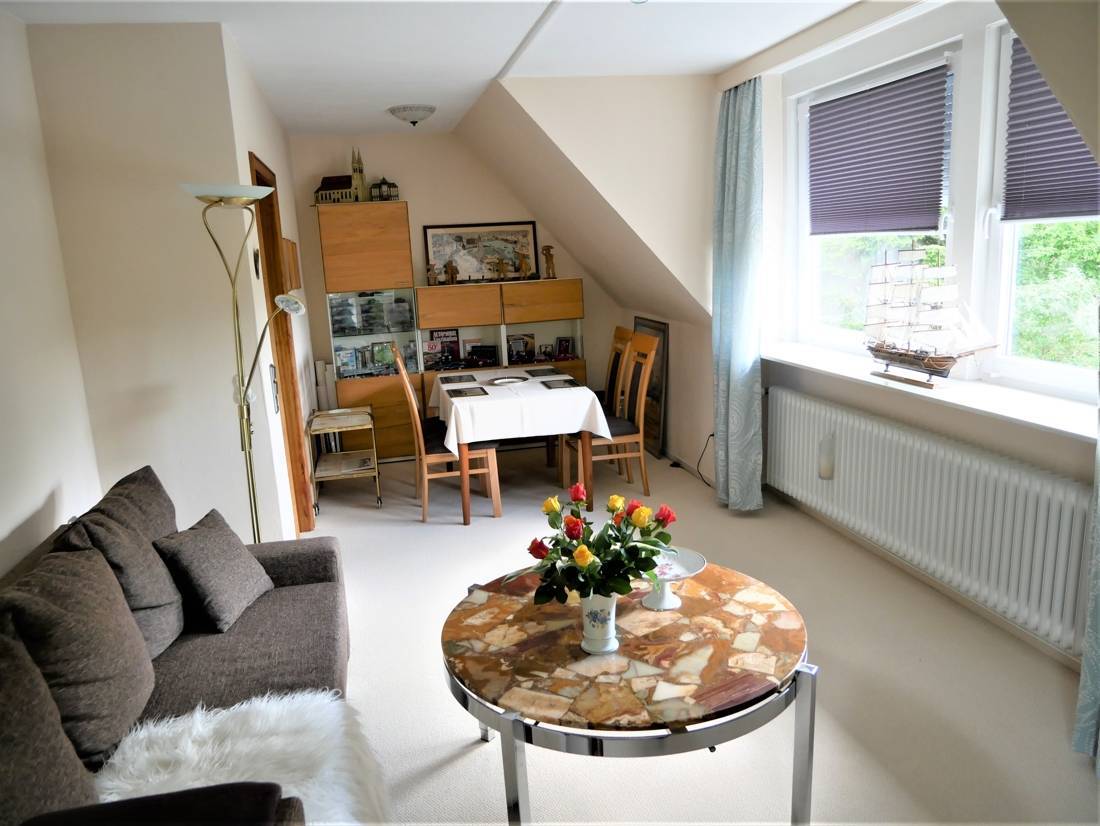 Im Dachgeschoss befindet sich eine Einliegerwohnung, diese besitzt auch eine eigene Garage. Die Einliegerwohnung beinhaltet ein Wohnzimmer, eine Einbauküche und ein Vollbad. Des Weiteren ein Schlafzimmer und ein Gästezimmer, welche jeweils Zugang zu einer Abstellkammer haben.