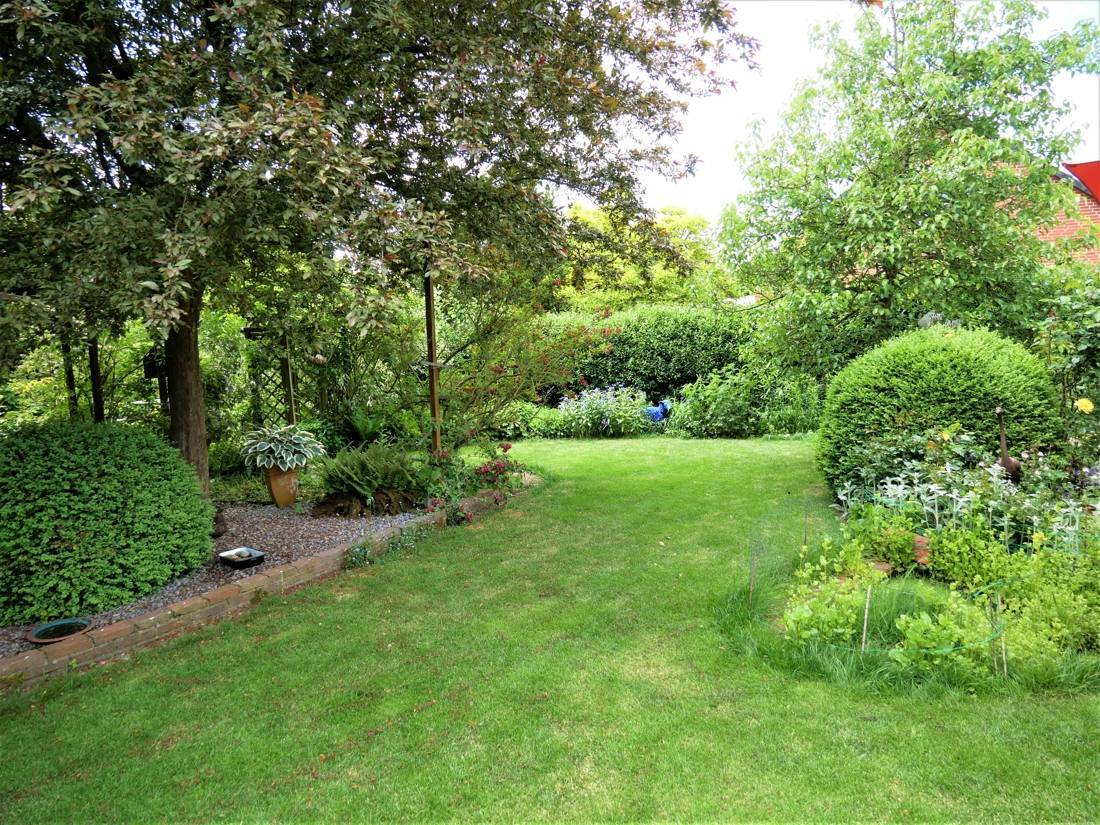 Durch die fortlaufenden Renovierungen, wie z.B. die erneuerten Fenster mit Doppelverglasung, befindet sich das Haus in einem gepflegten Zustand. Ebenfalls verfügt das Haus über zwei Garagen und drei Terrassen, die zum Verweilen in dem schönen, großen Garten einladen.