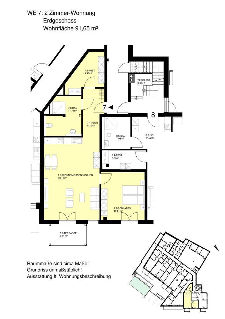 Erstbezug einer 2 Zimmer Wohnung im Erdgeschoss mit 91,65qm