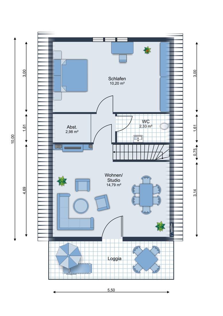 Für gemeinsame Stunden im Freien stehen Ihnen sowohl eine Loggia als auch eine Terrasse zur Verfügung, die wunderbare Möglichkeit bieten, entspannte Sommerabende zu genießen oder Familie und Freunde zu unterhalten. Für die Freizeitgestaltung und Hobbys bietet ein separater Hobbyraum den idealen Ort, sich kreativ auszuleben oder