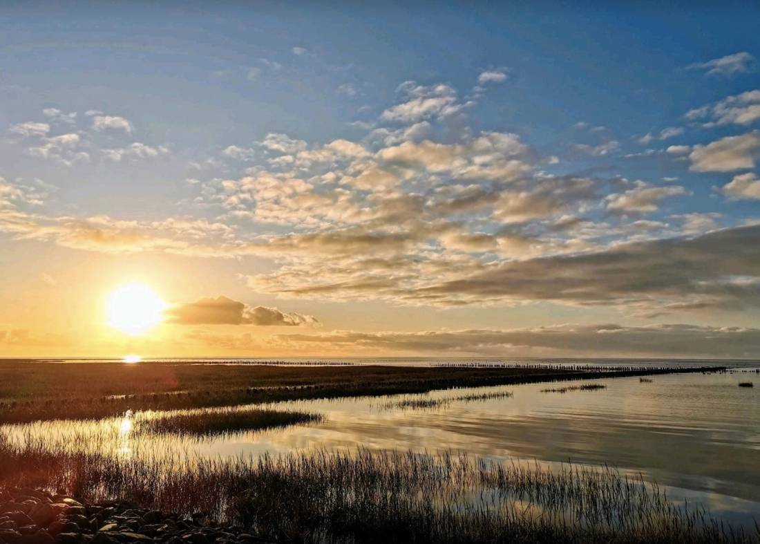 Schiffsausflüge zu den Inseln und Halligen, Wattwanderungen, das Eidersperrwerk mit traumhaften Sonnenuntergängen, sowie das Naturparadies Katinger Watt gewähren einen hohen Freizeitwert.