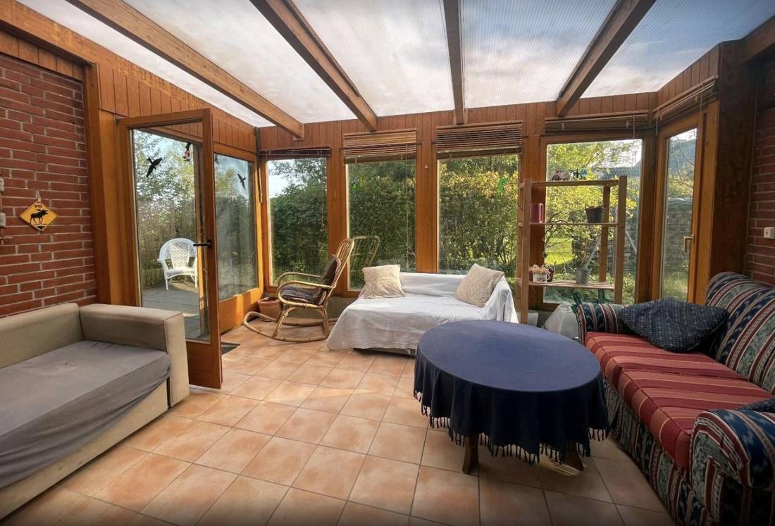 Ein Wintergarten mit Blick in die Natur, komplementiert die Immobilie.