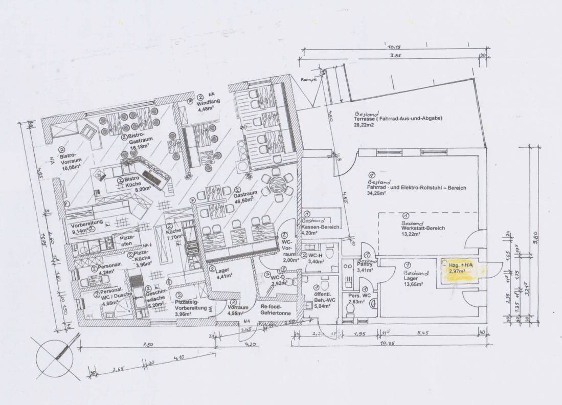 Die Gastrofläche umfasst rund 200 m² und bietet im Gastraum Platz für ca. 55 Gäste. Die voll ausgestattete Küche erfüllt alle Anforderungen. Ein gemütlicher Thekenbereich, sowie eine Terrasse bieten beste Voraussetzungen für die Bewirtung von Gästen sowohl im Innen- als auch im Außenbereich.