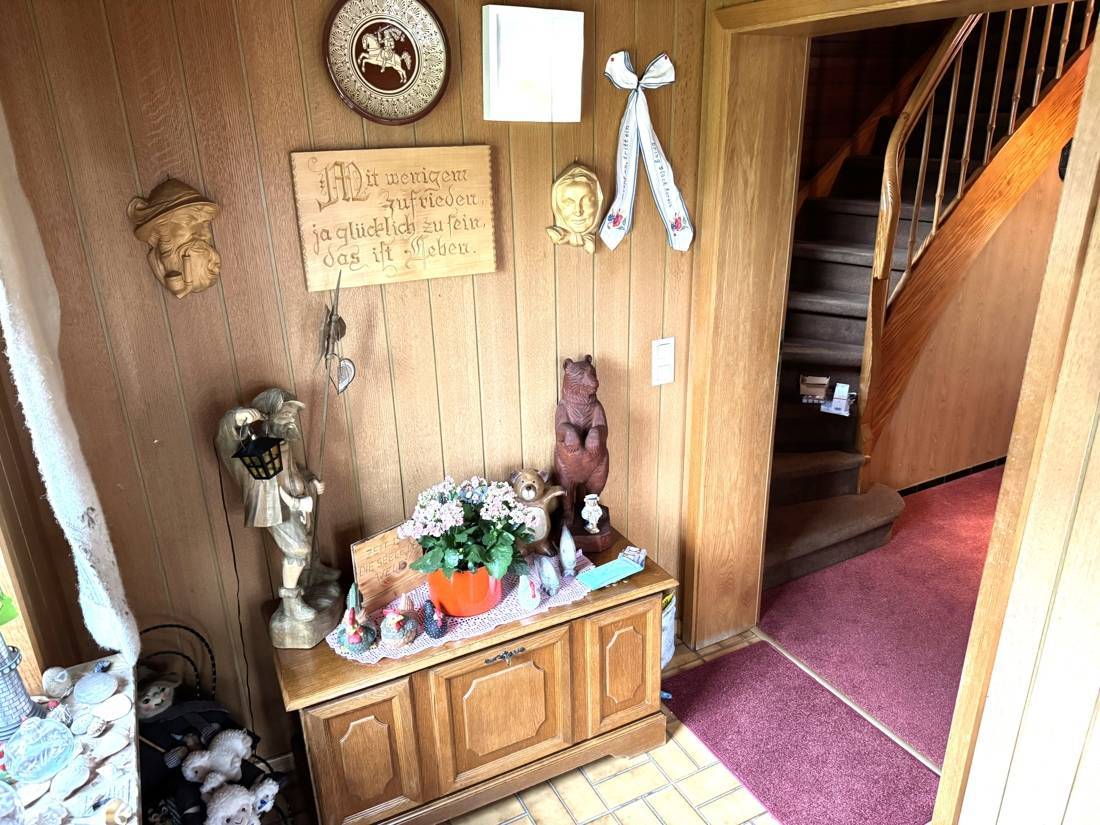 Im Obergeschoss gelangt man über den Flur in alle Räumlichkeiten. Neben dem Badzimmer, befinden sich hier zwei Zimmer und eine Küche.