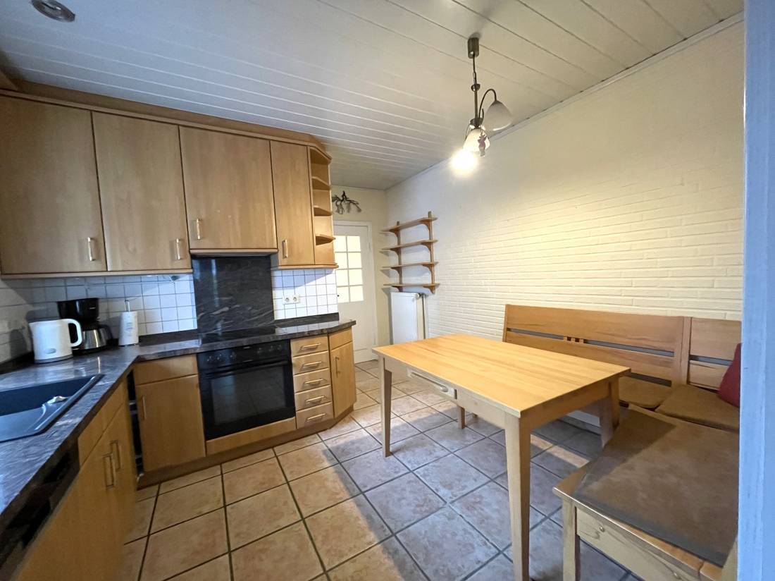 Hier gibt es ein Zimmer mit Terrasse im Erdgeschoss, plus Miniküche und Bad mit Waschmaschinenanschluss sowie im Obergeschoss einen Schlafraum und Flur.