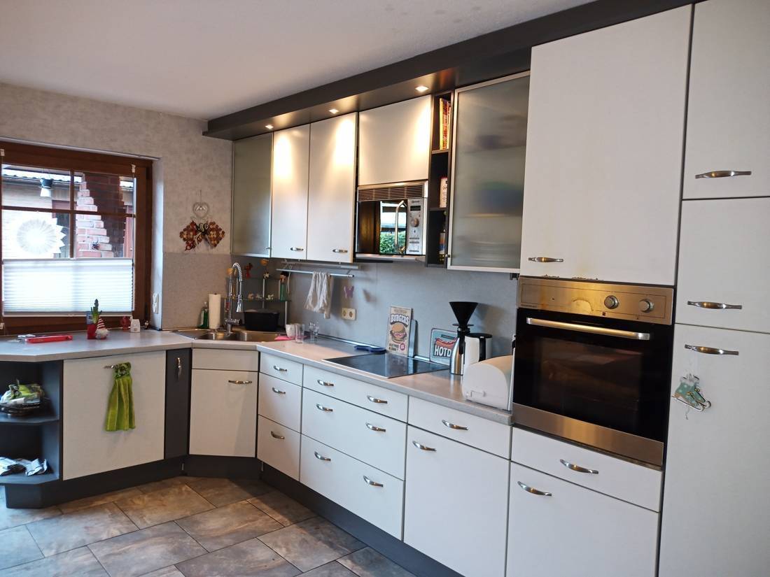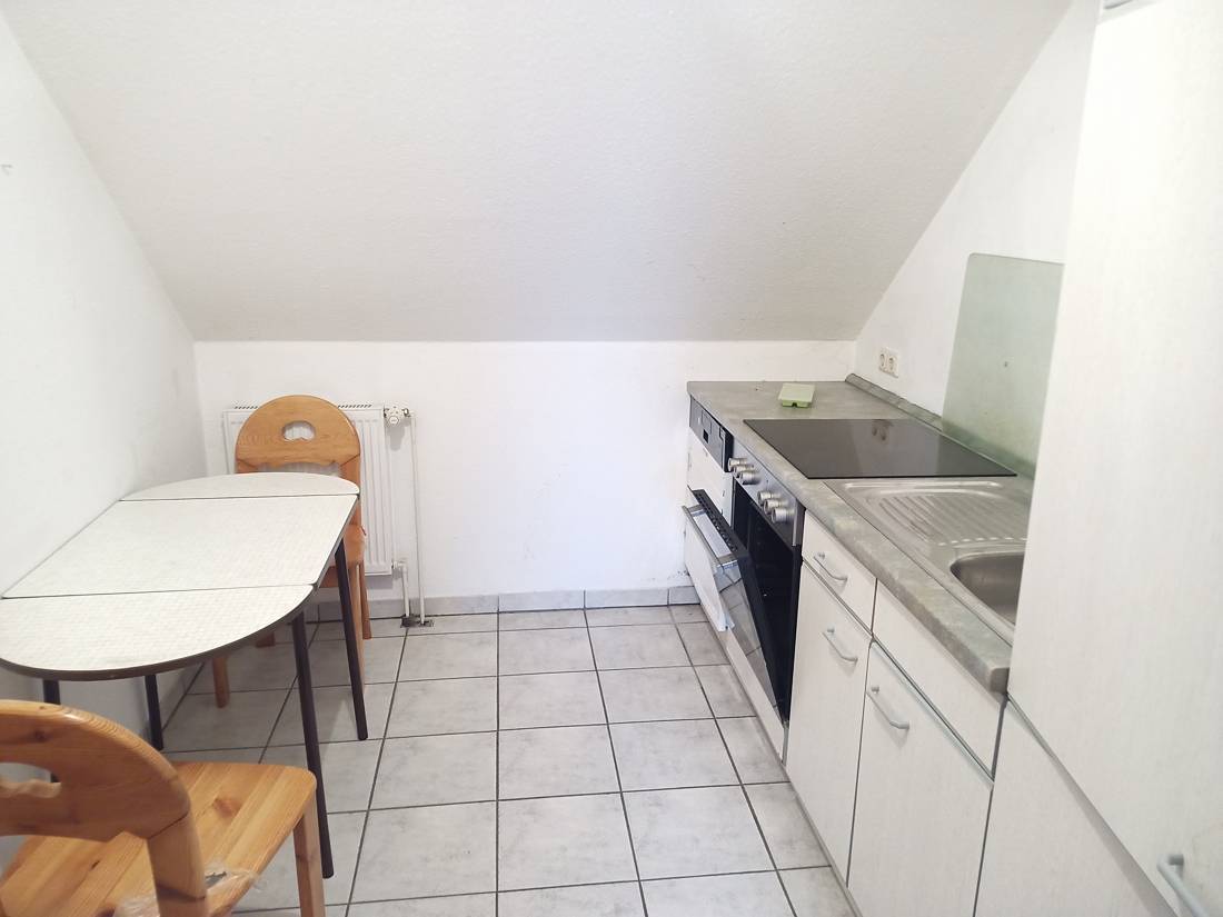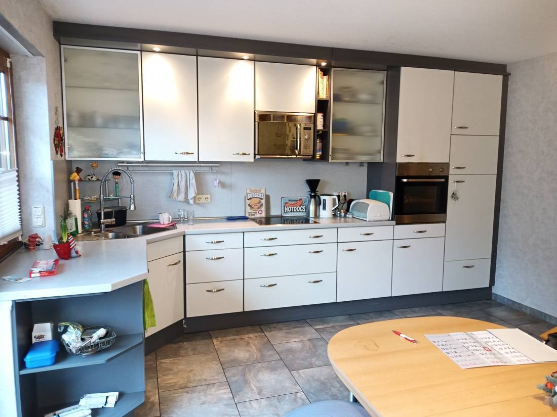 An dem Wohnzimmer angrenzend befindet sich die Küche mit Essecke. Sie ist modern gestaltet und lädt zu Kochprojekten ein.