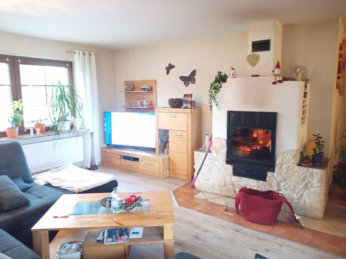 Hervorzuheben ist das große Wohn- und Esszimmer. Dieses bietet genügend Platz für Abende mit der Familie und Freunden. Für wohlige Wärme sorgt ein großer Ofen, er ist in Handarbeit für mehrere tausend Euro erbaut worden – ein echter Hingucker und Unikat. Zudem verfügt der Ofen über eine wasserführende Leitung zur Heizungsanlage, um die Heizkörper zu erwärmen. Ihre Heizung benötigen Sie somit nahezu nicht.