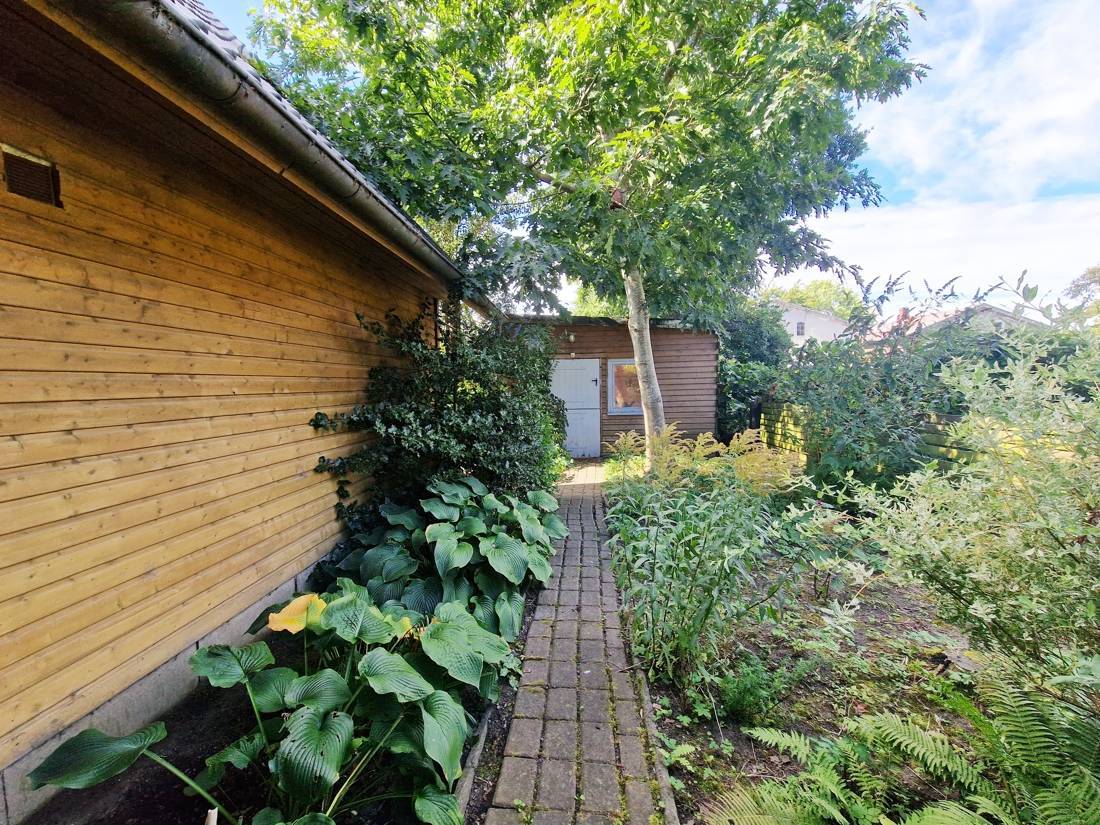Die Einliegerwohnung liegt im Flachdachanbau, ist separat nutzbar und aktuell vermietet (Netto-Kaltmiete 500,00 € / Monat). Sie bietet einen eigenen Eingangsbereich, Küche, Wohnzimmer, Schlafzimmer und Gästezimmer sowie eine eigene Südterrasse – ein klarer Mehrwert für Eigennutzer und Kapitalanleger.