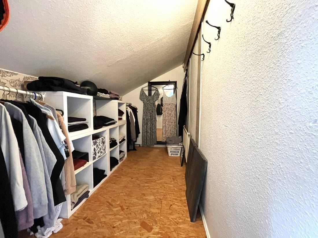 Das Vorderhaus hat im Dachgeschoß drei weitere Zimmer, ein Bad und ein Ankleidezimmer.
