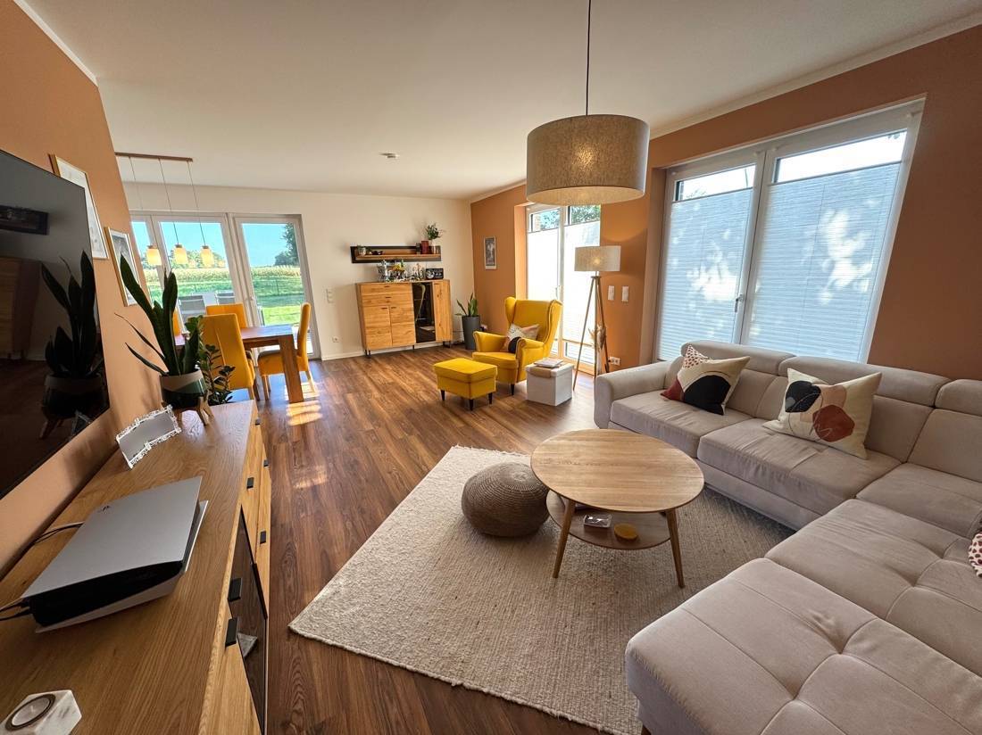 Dieses Einfamilienhaus wurde 2021 von der renommierten Firma Viebrockhaus in massiver Stein-auf-Stein-Bauweise errichtet und befindet sich in einem neuwertigen Zustand. Mit einer Wohnfläche von ca. 136,85 m² bietet das Haus auf zwei Etagen ein durchdachtes Raumkonzept, das modernen Wohnkomfort, eine klare Struktur und stilvolle Details vereint. Bereits beim Betreten des Hauses spürt man die großzügige Gestaltung, die mit viel Tageslicht und einer hochwertigen Ausstattung ein behagliches Wohngefühl schafft.