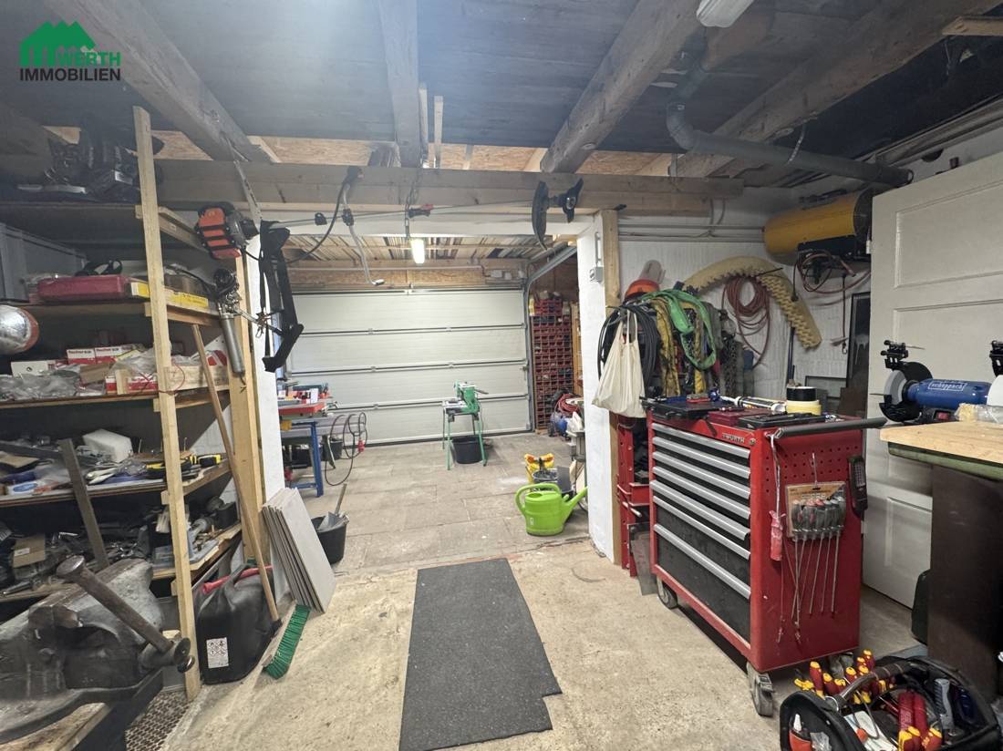 Das Haus besticht durch seine durchdachte Raumaufteilung. Im Erdgeschoss befindet sich ein lichtdurchflutetes Wohnzimmer mit offener Küche, das in ein gemütliches Esszimmer übergeht. Ein modernes Badezimmer, ein geräumiges Schlafzimmer sowie ein Hauswirtschaftsraum mit Zugang zum Dachgeschoss runden das Raumangebot auf dieser Ebene ab. Zusätzlich gibt es einen einladenden Windfang, der als Hauseingang dient, sowie direkten Zugang zur Werkstatt und Garage.