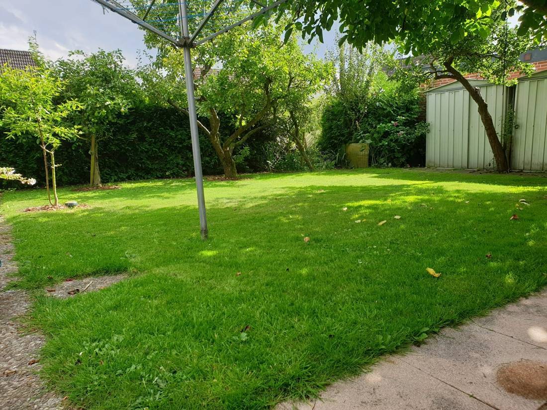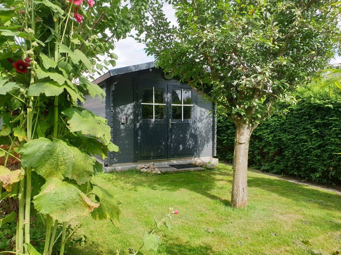 Auch im Außenbereich zeigt sich dieses Zuhause von seiner besten Seite: Der pflegeleichte Garten schenkt Ihnen Platz zum Entspannen, ohne viel Arbeit zu bereiten. Auf der überdachten Terrasse lassen sich die Abende im Freien wunderbar verlängern selbst, wenn ein leichter Sommerregen einsetzt. Ein Gartenhaus bietet zusätzlichen Stauraum für Geräte und Fahrräder.