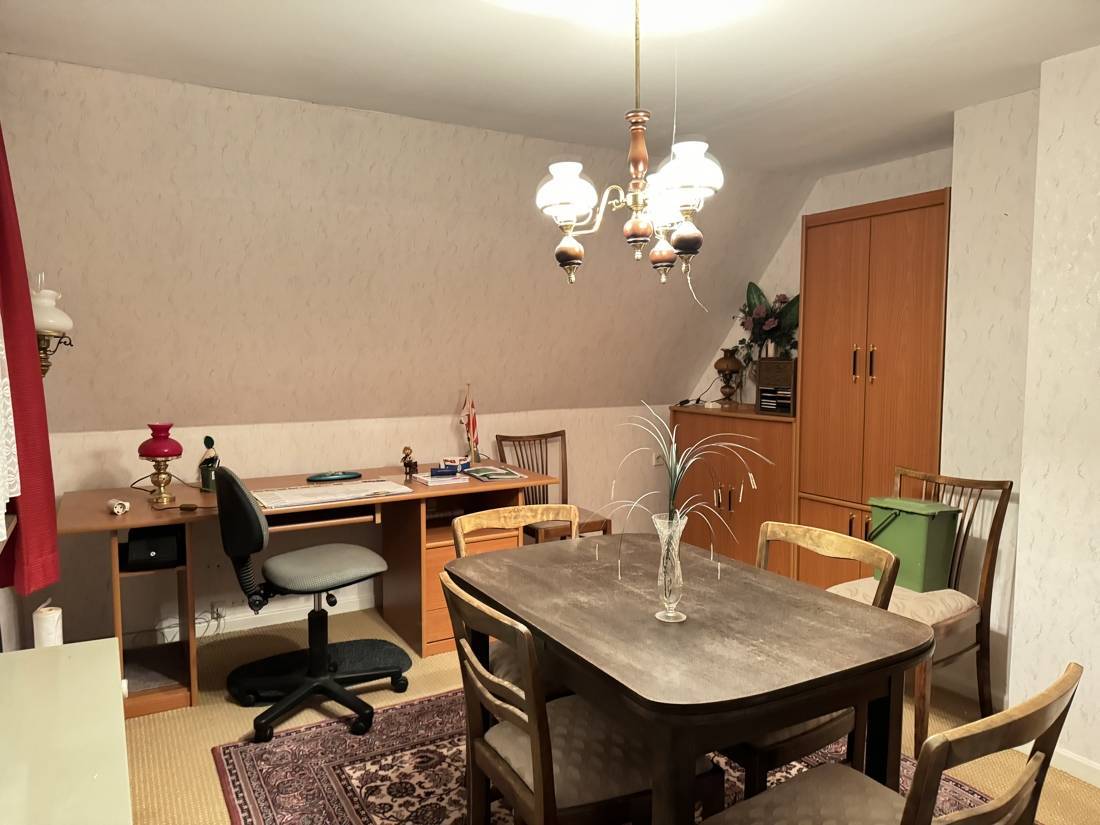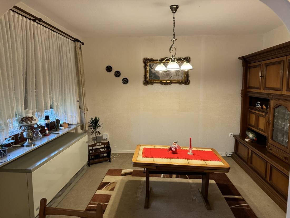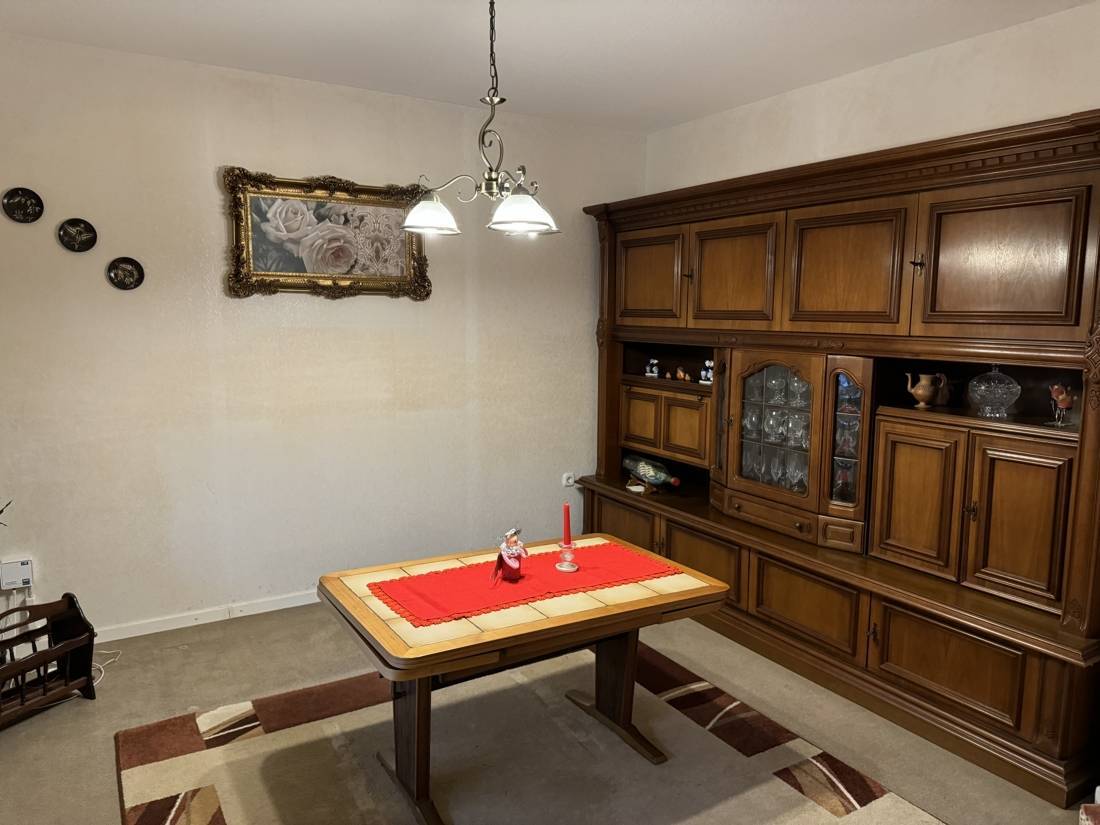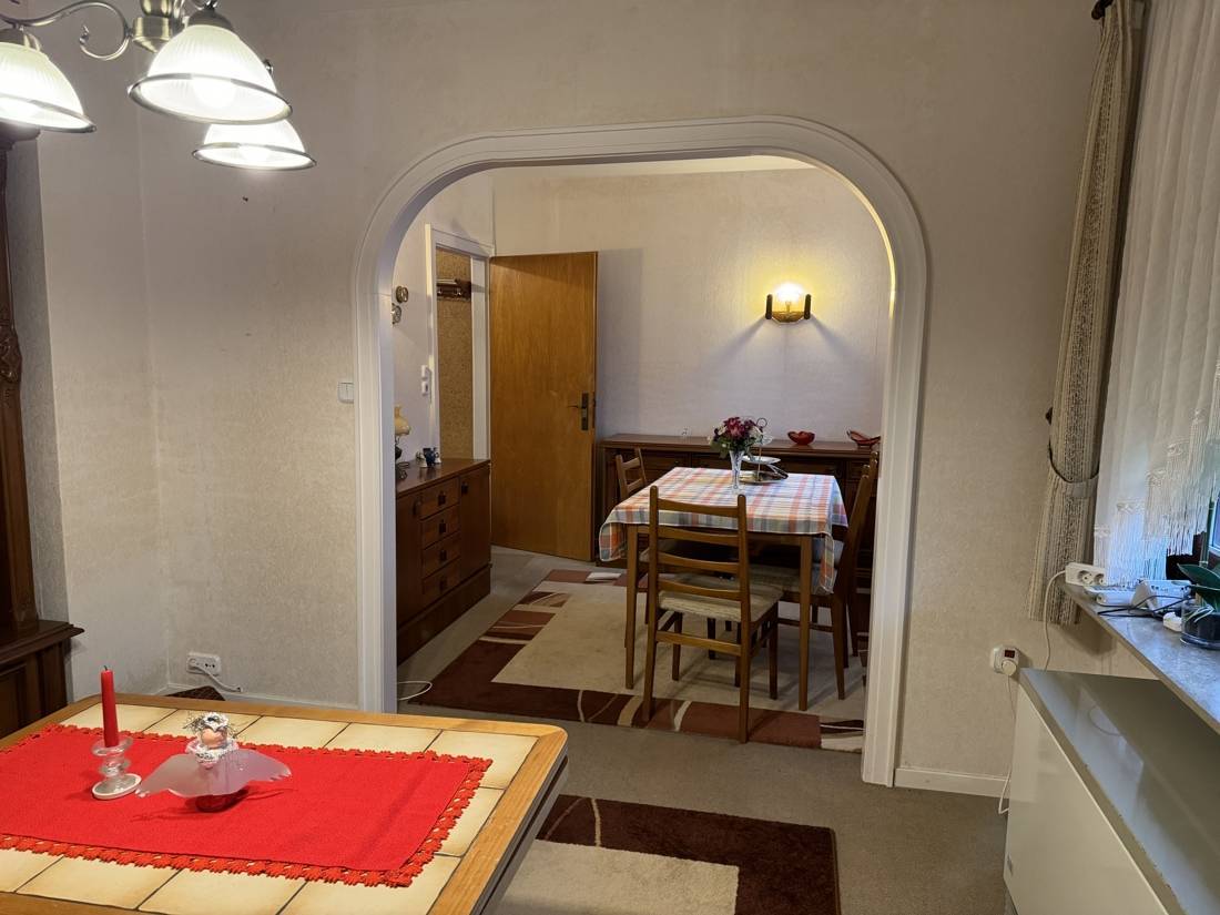 Auf einer ansprechenden Wohnfläche entfaltet sich ein kleines Zuhause, das im Glanz vergangener Zeiten erstrahlt und auf eine Auffrischung wartet, um seine Seele neu zu entfalten. Das Herzstück der Immobilie ist das Wohn- und Esszimmer. Es bietet Ihrer Familie ausreichend Platz für gemütliche Stunden. Gegenüberliegend befindet sich eine kleine Küche mit Essecke.