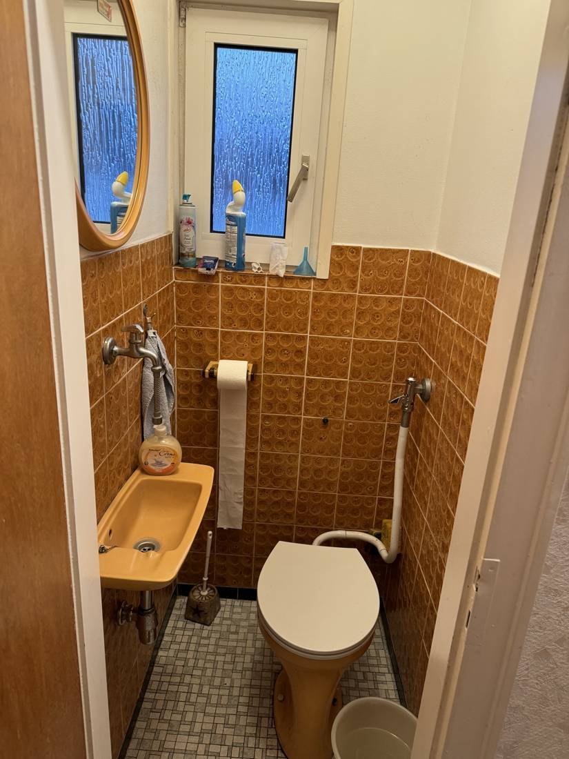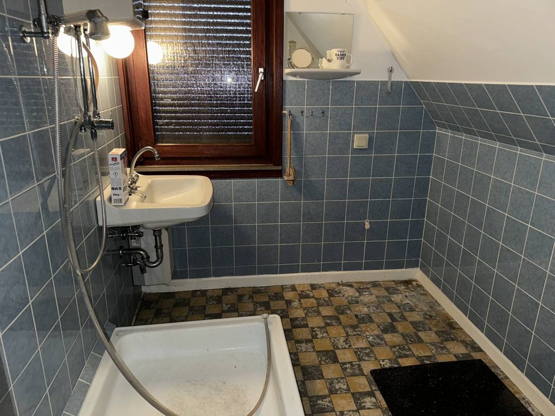 Das separate Gäste-WC und das Duschbad im Dachgeschoss bieten Komfort, die jedoch etwas aus der Zeit gefallen sind.
