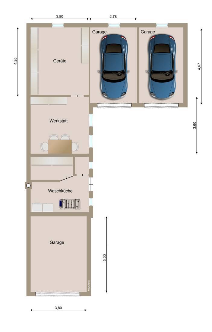 Zum Grundstück gehören drei Garagen, von denen zwei mit neuwertigen Flügeltoren ausgestattet sind. Die dritte Garage verfügt über ein elektrisches Tor, was das Ein- und Ausfahren besonders bequem macht. Außerdem gibt es ein ehemaliges Stallgebäude, das heute als Werkstatt genutzt wird, sowie eine gemütliche Gartenlaube mit Blick über den Garten, ideal für entspannte Stunden im Freien oder kleine Grillpartys.