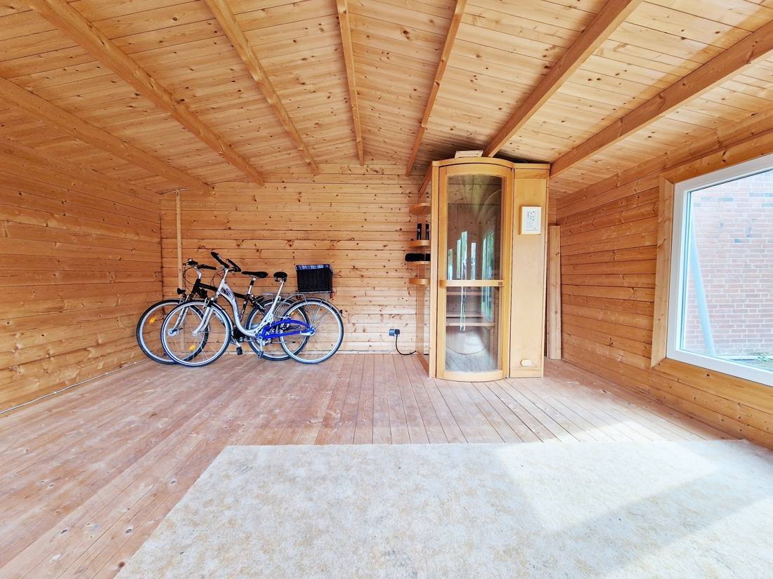 Der Außenbereich ist ein echtes Plus: Die überdachte Terrasse wird zum zweiten Wohnzimmer in der warmen Jahreszeit, der Garten lädt zum Entspannen ein. Ein Gartenhaus mit kleiner Sauna sorgt für private Wellnessmomente, der Geräteschuppen für Ordnung. Zwei Kfz-Stellplätze im Freien sowie eine Garage bieten bequem Platz für Fahrzeuge und Freizeitutensilien.