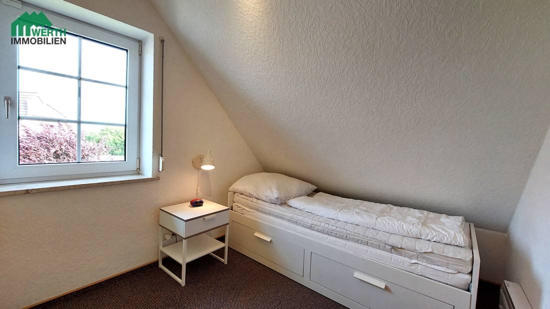 Das Dachgeschoss beherbergt ein geräumiges Schlafzimmer mit praktischem Einbauschrank in der Dachschräge. Zudem wurde das ursprünglich große zweite Schlafzimmer in zwei kleine Kinderzimmer aufgeteilt, um mehr Privatsphäre zu schaffen. Ein kleines WC ergänzt die Etage.