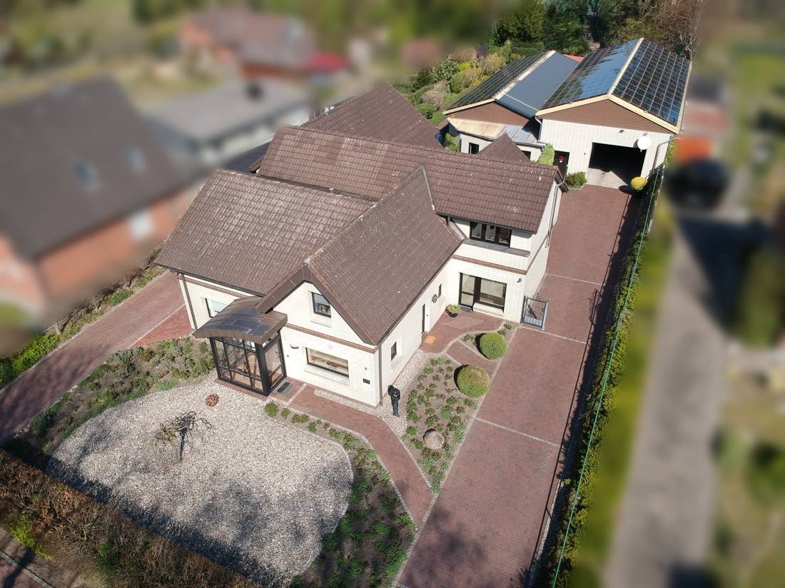 Das gepflegte Grundstück unterstreicht den hervorragenden Gesamteindruck der Immobilie. Ein großzügig gepflasterter Zufahrtsbereich, sowie eine ansprechende Fassadengestaltung runden das Gesamtbild harmonisch ab.