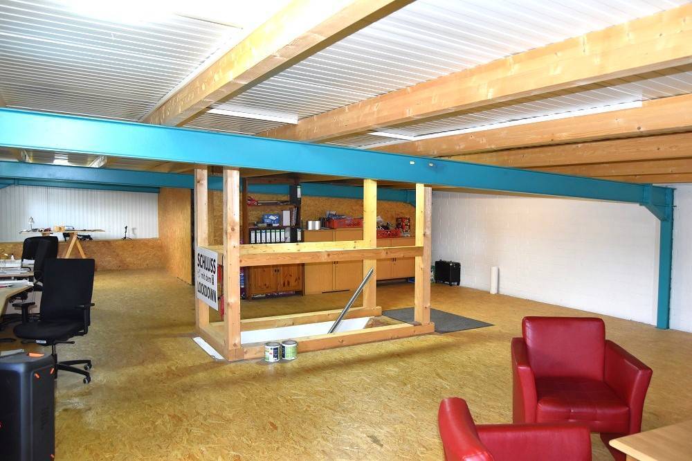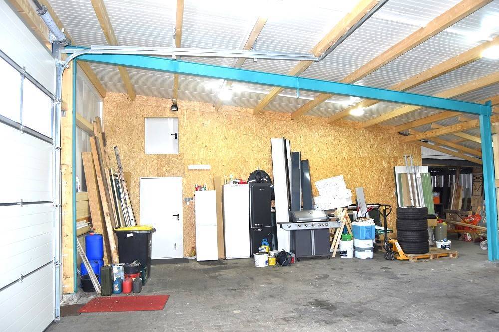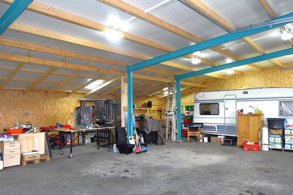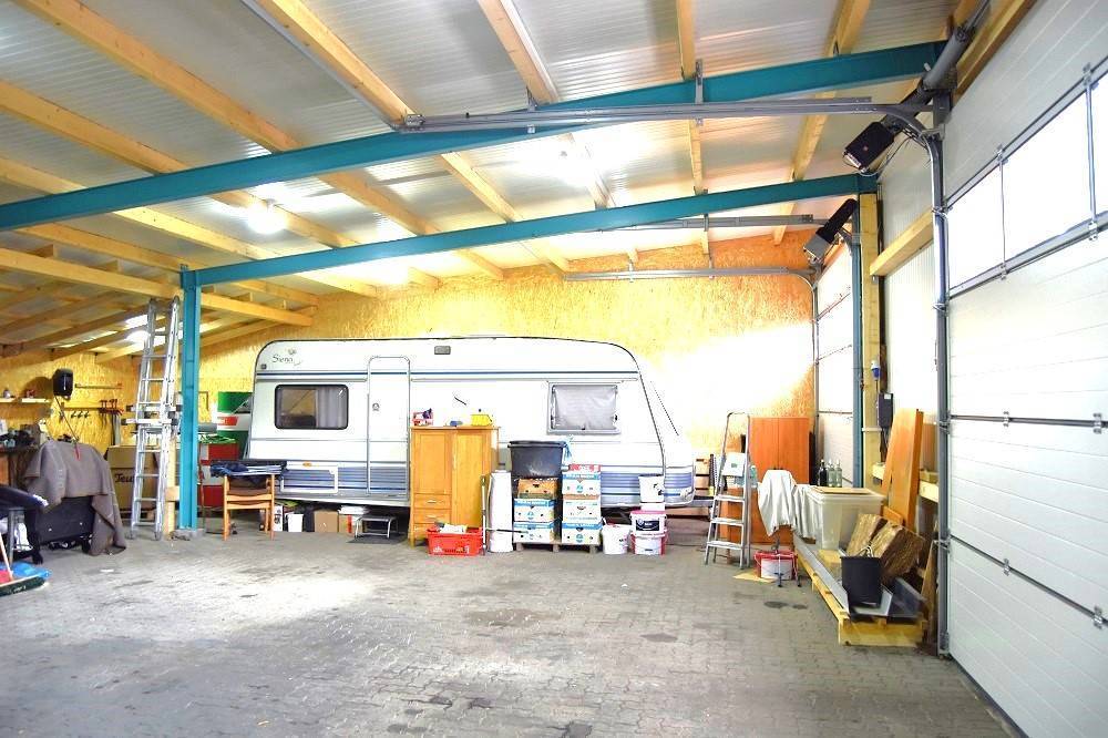 Die Halle verfügt über ein großes Büro im EG + OG, incl. Küche, Duschbad, WC. Mit 2 hohen Rolltoren versehen finden hier auch Wohnwagen oder Wohnmobil ihren Platz.