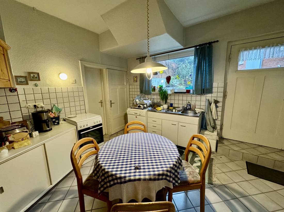 Das im Jahre 1918 erbaute Einfamilienhaus verfügt über einen großen Wohnbereich und zusätzlich über eine vermietete Gewerbeeinheit. Im Einfamilienhaus gelangt man im Eingangsbereich direkt zum Gäste-WC. Vom Flur erreicht man die Küche, sowie den Wohn- und Essbereich. Von der Küche erreicht man ebenfalls die Speisekammer und den Keller, welche beide viel Platz zum Verstauen bieten. Im Obergeschoss des Hauses ist das Duschbad zu finden. Außerdem bietet das Obergeschoss drei Schlafzimmer, wovon eines einen Balkon- und ein weiteres eine angrenzende Kleiderkammer zu bieten hat.Der Außenbereich ist durch den Hinterhof und den Kleingarten gekennzeichnet, wo man blickgeschützt die Ruhe genießen kann. Ebenfalls befindet sich im Hinterhof ein altes Schlachthaus, dass viel Stellplatz und Lagerfläche bietet. Eine eigene Garage rundet das Gesamtpaket des Wohnbereiches ab.