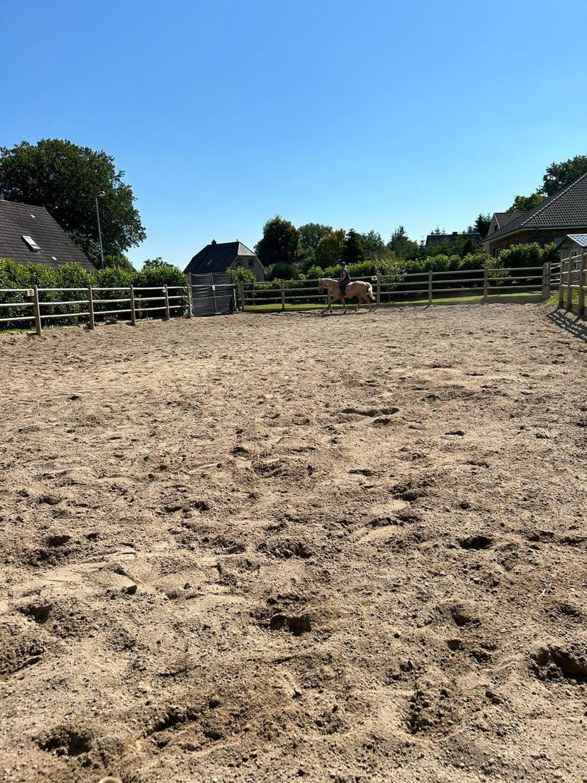 Das Stallgebäude biete Platz für zwei Pferde. Ein Paddock (Sandplatz) und eine Weide bieten ausreichend Platz für den täglichen Auslauf der Pferde. Die Weidefläche ist mit einem Holzzaun umzäunt und zusätzlich auf der Innenseite mit Strom gesichert. Ein Reitplatz mit den Maßen 15m × 30m ergänzt das Angebot. Darüber hinaus gibt es zwei Lagerräume, welche optimal als Stroh- und Heulager genutzt werden können. Auf dem Grundstück befindet sich ebenfalls ein praktisches Mist-Zwischenlager mit Laderampe, das die Tierhaltung noch komfortabler macht.