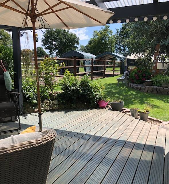 Zusätzlich verfügt das Haus über eine gemütliche Terrasse, die Ihnen einen wunderbaren Blick auf den Reitplatz ermöglicht.