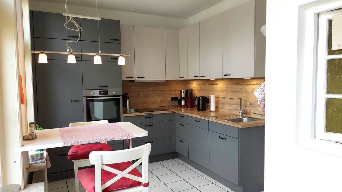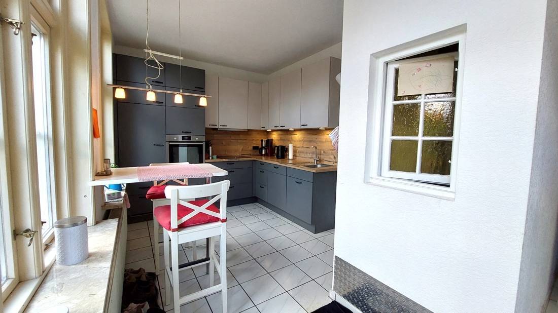 Die moderne Einbauküche wurde vor rund vier Jahren erneuert und ist nicht nur funktional, sondern auch stilvoll gestaltet. Von hier aus gelangen Sie sowohl in einen praktischen Abstellraum als auch in den kleinen Vorratskeller.