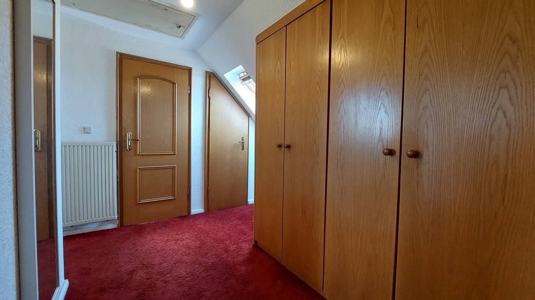 Die Wohnfläche von insgesamt ca. 114,5 m² verteilt sich auf das Erd- und Dachgeschoss. Das Haus verfügt über sechs Wohn- und Arbeitszimmer. Die Aufteilung bietet vielfältige Nutzungsmöglichkeiten für Familien, Homeoffice oder Gäste.