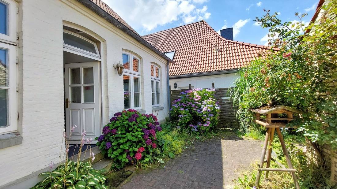 Ein echtes Highlight des Hauses ist der altfriesische Pyramidenofen, der für wohlige Wärme sorgt und dem Wohnraum eine gemütliche Atmosphäre verleiht. Ebenso prägend für das Haus sind die charakteristischen Friesenfenster, die nicht nur optisch hervorstechen, sondern dank ihrer speziellen Bauweise – außen einfach und innen doppelt verglast – auch einen hervorragenden Schallschutz bieten und so für angenehme Ruhe im Haus sorgen.
