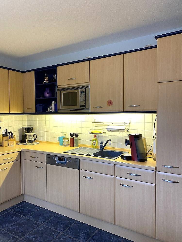 Die gute Ausstattung umfasst eine maßgeschneiderte Einbauküche, die sowohl für kulinarische Experimente als auch für gesellige Abende prädestiniert ist. Genießen Sie sonnige Tage und laue Abende auf der einladenden überdachten Terrasse, die direkt an den gepflegten Garten angrenzt – ein Ort der Erholung und Entspannung.