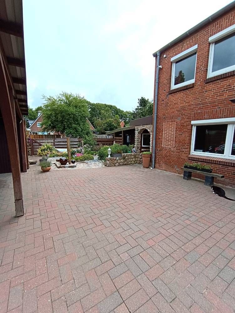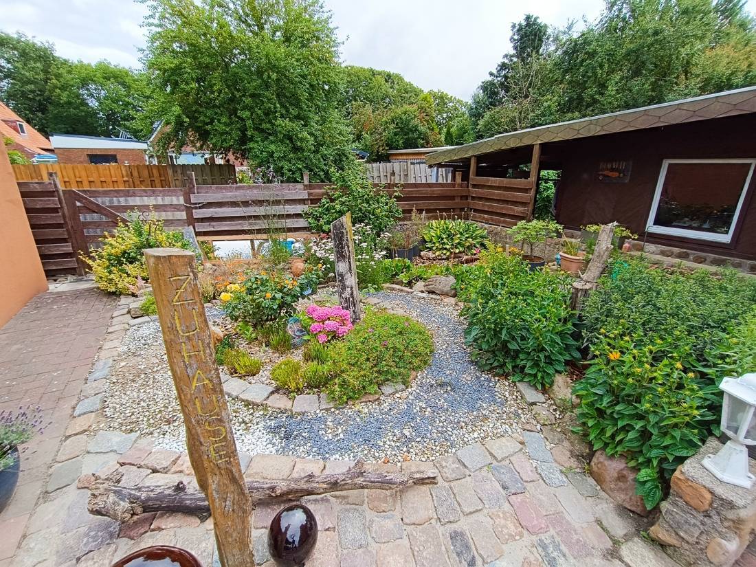 Der Außenbereich lädt mit einer charmanten Terrasse zu entspannten Stunden im Freien ein. Ideal für Familienfeiern oder gemütliche Abende unter freiem Himmel.