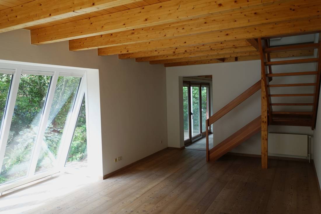Im Erdgeschoss erwartet Sie ein großzügiger Wohnbereich, der dank der großen Fenster das Herzstück des Hauses ist und ein einladendes Ambiente für gemeinsame Stunden bietet. Ebenfalls im Erdgeschoss befinden sich eine Küche mit Einbauküche, ein separates WC und ein weiteres Zimmer, das flexibel genutzt werden kann – ob als Arbeitszimmer, Gästezimmer oder Spielzimmer.