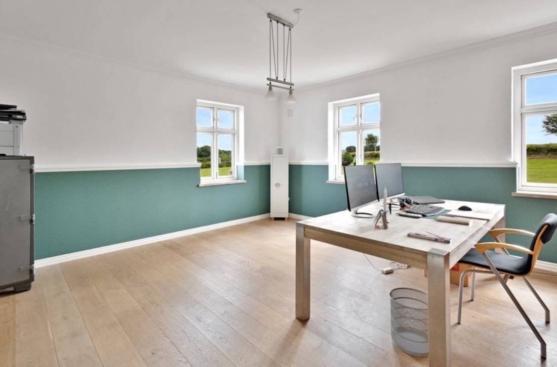 Entdecken Sie Ihre persönliche Oase in der malerischen und ruhigen Alleinlage knapp hinter der Grenze zu Dänemark. Diese beeindruckende Reitanlage bietet alles, was das Herz eines Reiters begehrt: