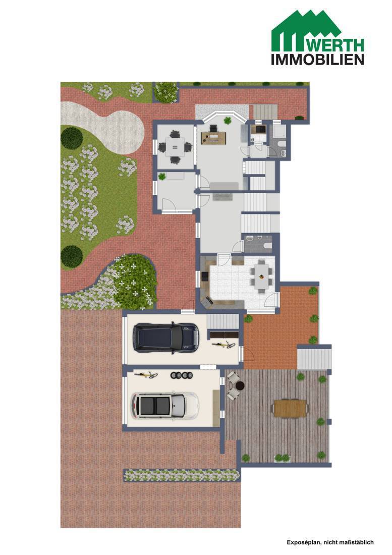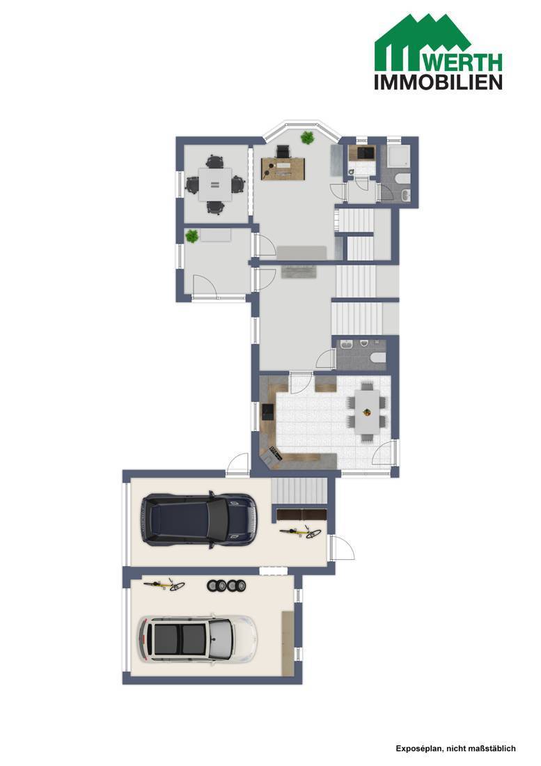 Garagen: Drei große Garagen bieten reichlich Platz für Fahrzeuge und zusätzlichen Stauraum.