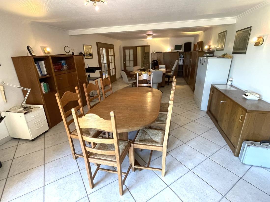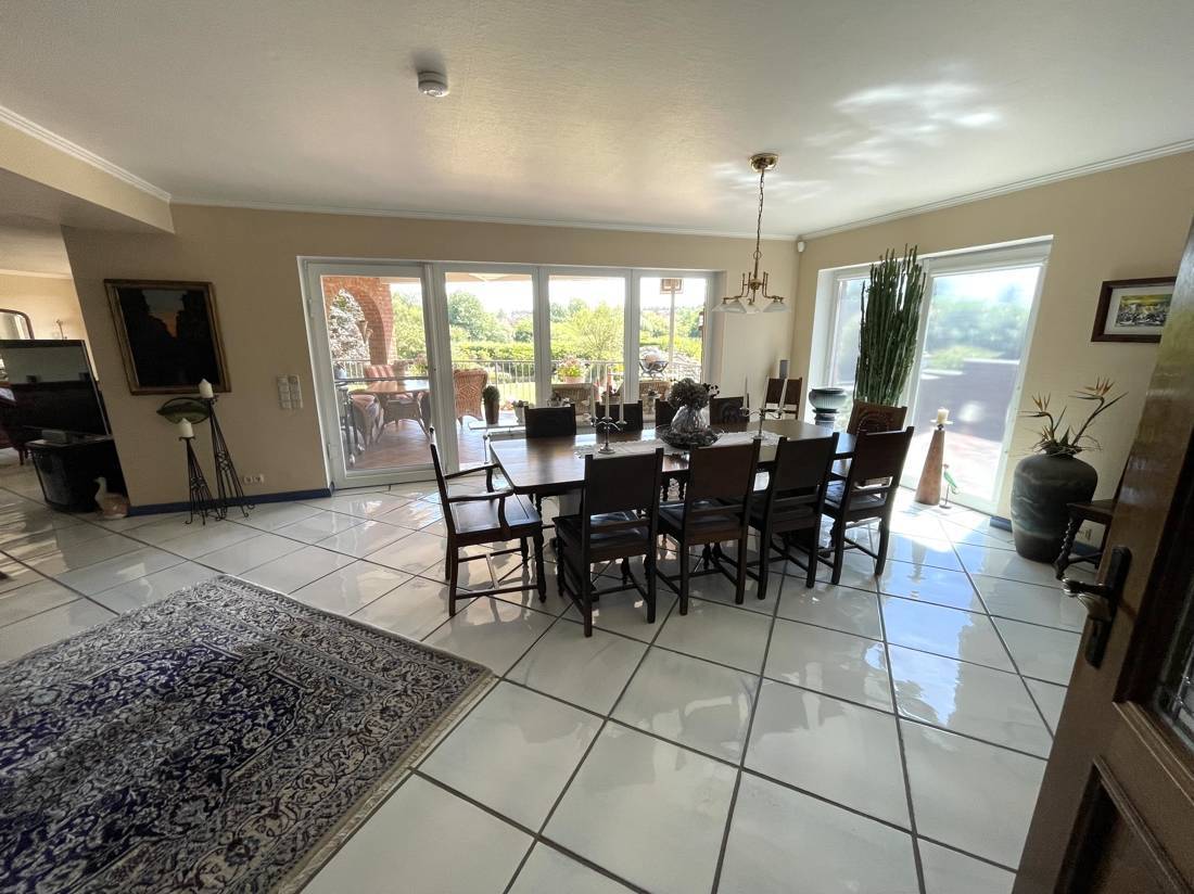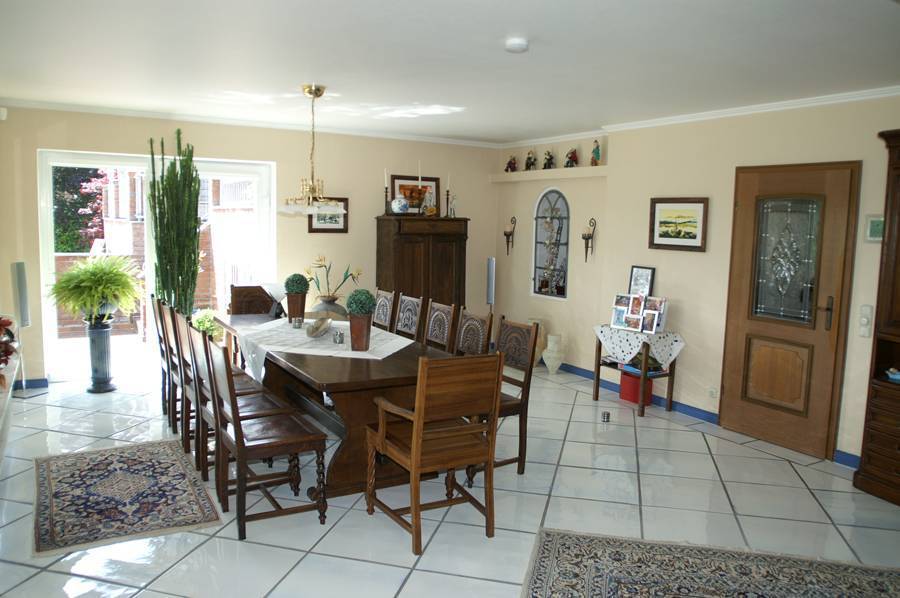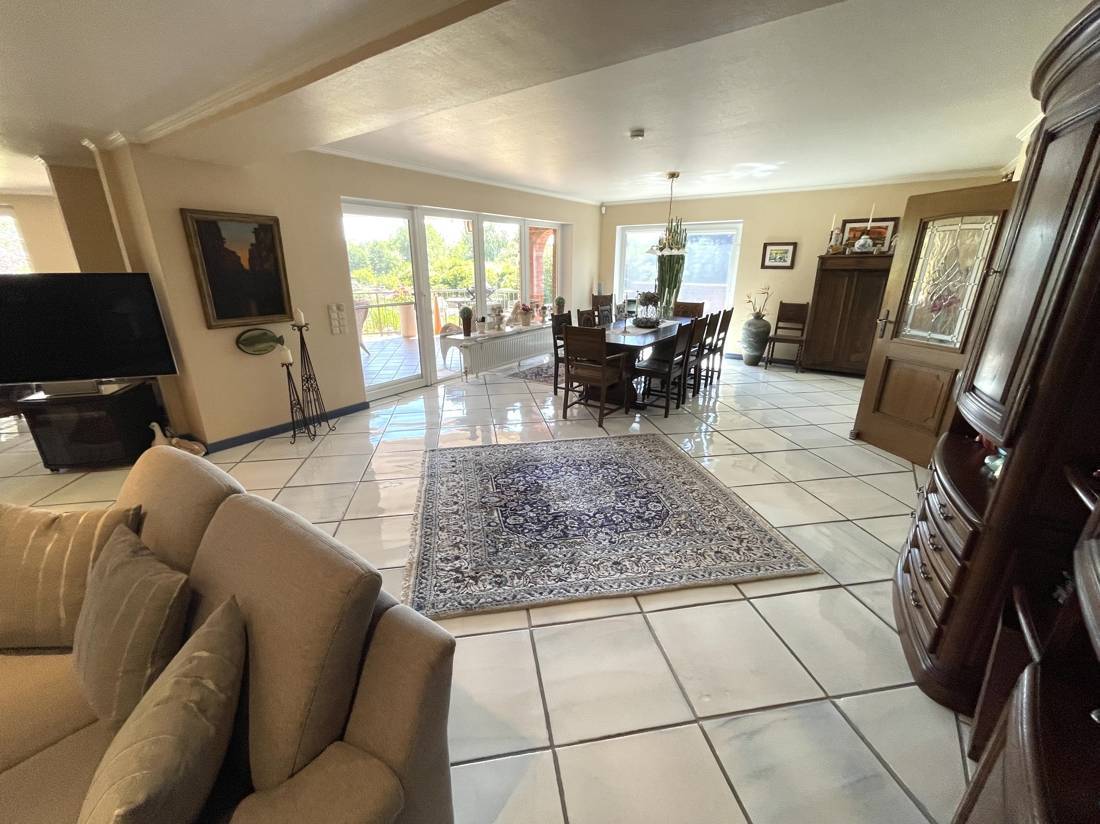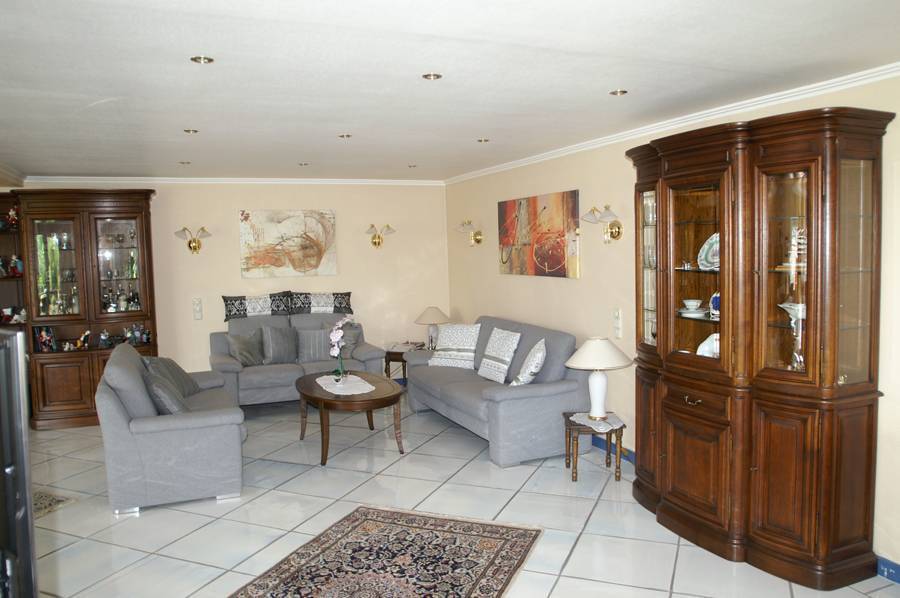 Die Immobilie bietet insgesamt 9 Zimmer, verteilt auf mehrere Ebenen, sowie 2 Vollbäder, 2 Duschbäder und ein Gäste-WC. Weitere Nutzflächen umfassen einen Saunaraum mit Dusche (Schwallbrause) und separatem WC, einen Teilkeller sowie 3 große Garagen mit einer Gesamtfläche von ca. 100 m² (zwei Garagen je ca. 25 m² und eine Garage ca. 50 m²).