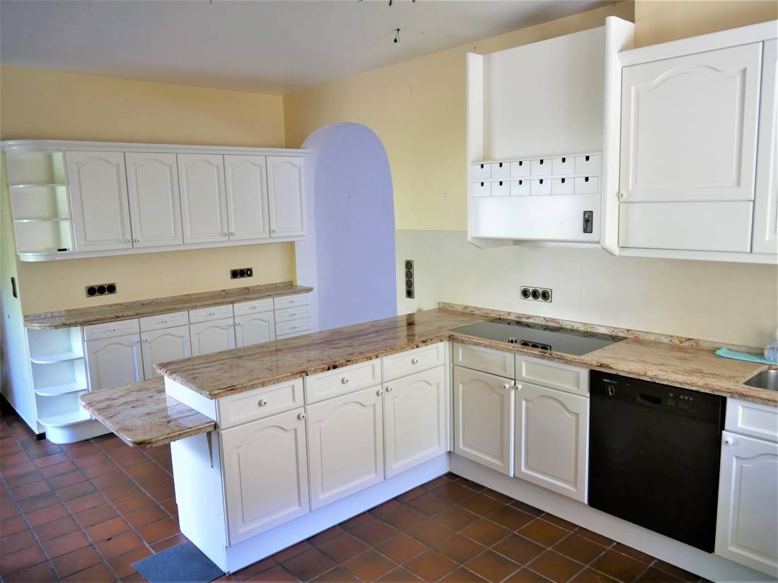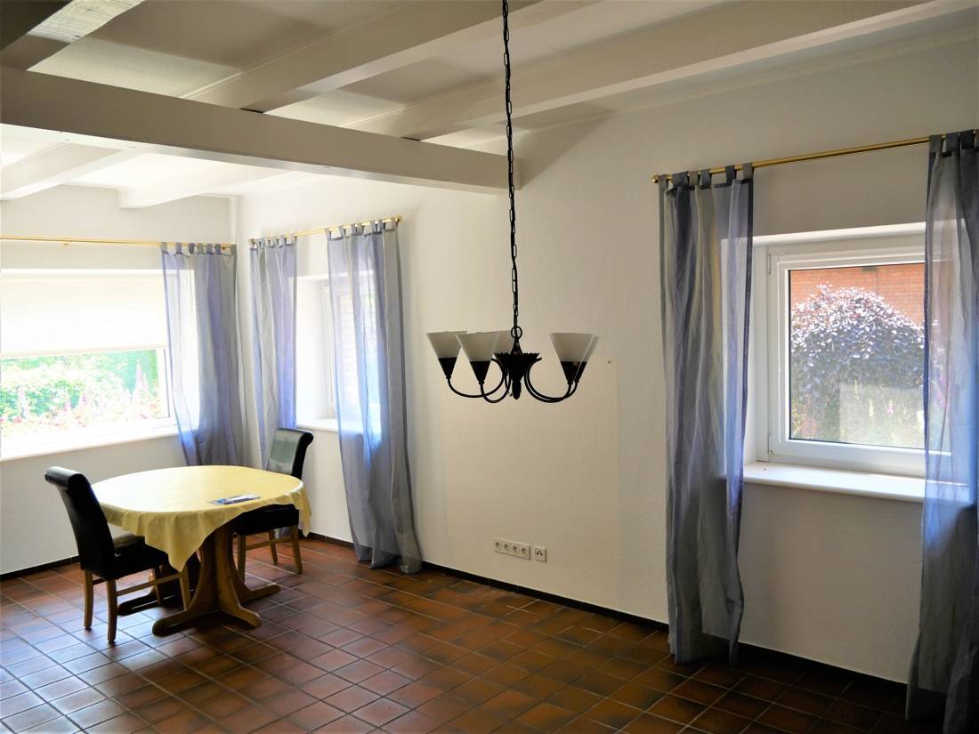 Direkt neben der Reitanlage, auf 1.600 m², befindet sich das EFH mit einer Wohnfläche von ca. 300 m². Im Anbau befindet sich eine ehemalige Tierarztpraxis auf ca.240 m².