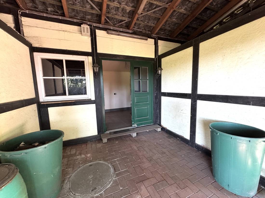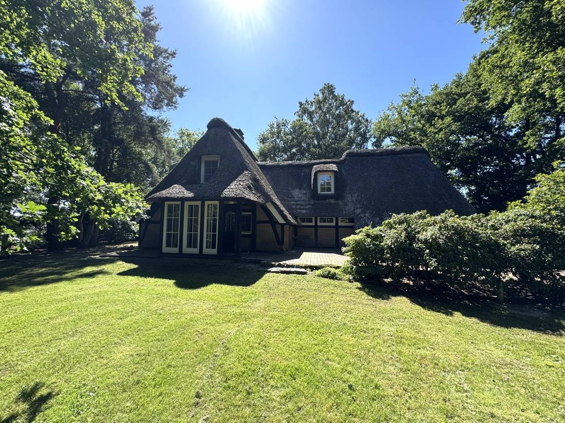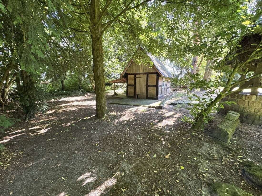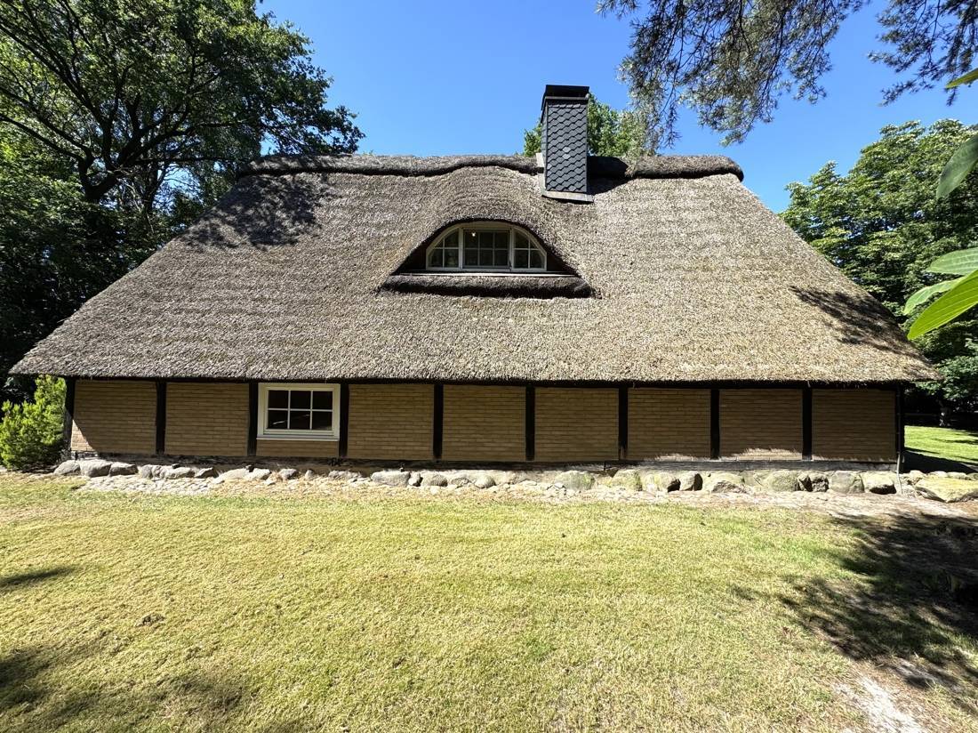 Besonders ins Auge fällt das Haupthaus: In aufgelockerter Winkelform gebaut, mit viel Liebe zum Detail ausgestattet und mit einem stilvollen Reetdach gekrönt, strahlt es eine warme, einladende Atmosphäre aus. Trotz seines Alters wirkt es wie aus einem Guss – die Architektur, die verwendeten Materialien und die gepflegte Substanz lassen es zeitlos erscheinen. Die gesamte Immobilie ist in einem guten und gepflegten Zustand und sofort bewohnbar – ohne dringenden Handlungsbedarf. Für Menschen mit dem Wunsch nach Rückzug, Ruhe und Raum zur freien Entfaltung ist dieses Anwesen eine seltene Gelegenheit.