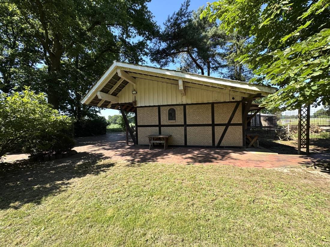 Dieses Anwesen in Deinstedt ist ein echtes Unikat – geschaffen für Menschen, die das Besondere schätzen und gleichzeitig naturnah leben möchten. Auf dem rund 4.000 m² großen Grundstück verteilen sich mehrere liebevoll errichtete Gebäude, die gemeinsam ein stimmiges Ensemble bilden: das großzügige Wohnhaus mit Reetdach, ein separates Gästehaus, ein erweiterter Carport mit Abstellflächen und eine kleine, freistehende Sauna. Die Wohnhäuser wurden über Jahrzehnte hinweg durchdacht erweitert – in den Jahren 1984, 1991, 1998 und zuletzt 2008. Dabei wurde großer Wert auf Qualität, Handwerkskunst und Substanz gelegt. Alle Bauteile wurden von einem renommierten, ortsansässigen Bauunternehmen errichtet, das für hochwertige Ausführung bekannt ist.