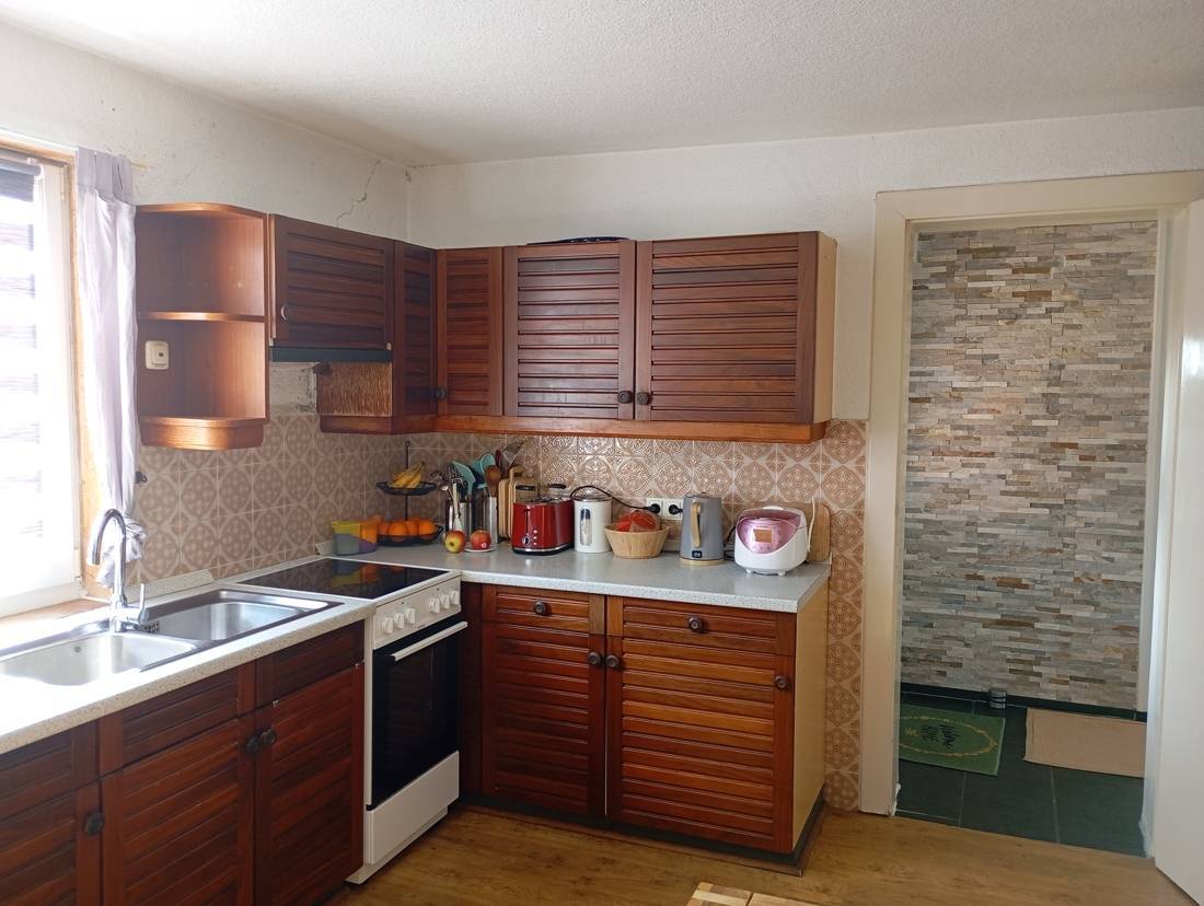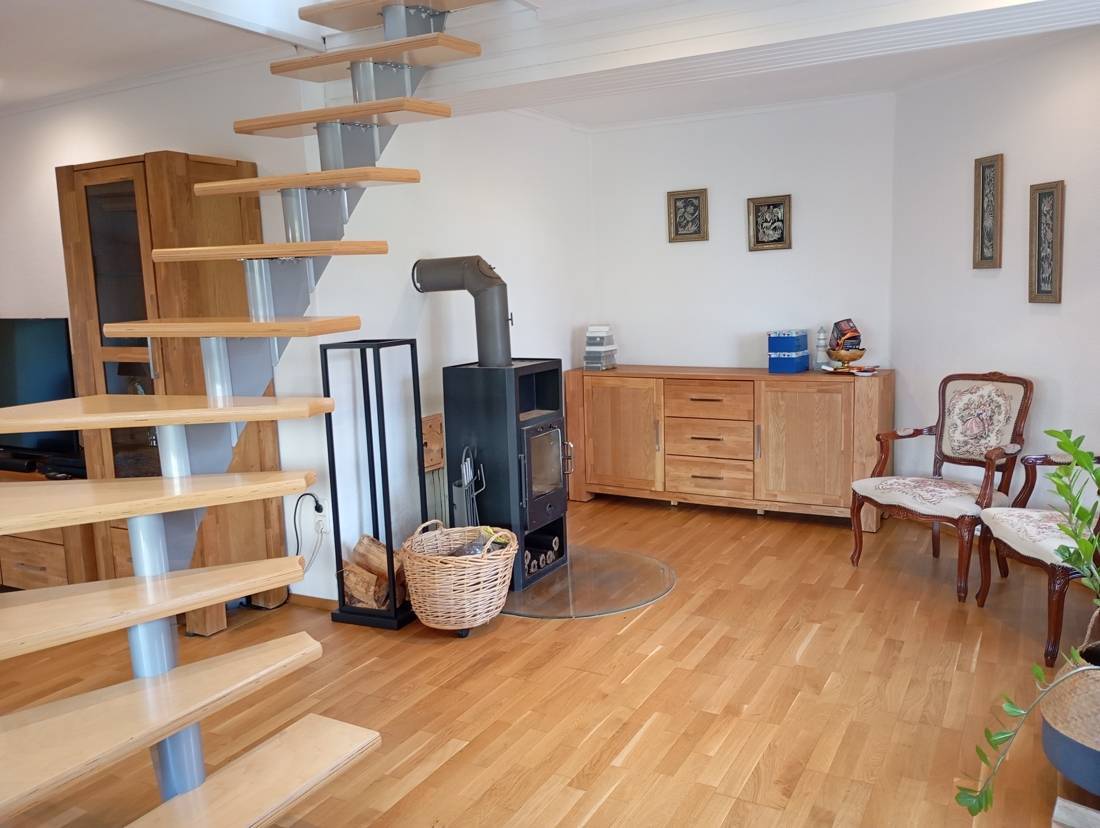 Die Einbauküche ist darauf ausgelegt, den kulinarischen Ansprüchen der Bewohner gerecht zu werden. Zudem lädt eine großzügige Terrasse dazu ein, entspannende Stunden im Freien zu genießen und Gäste zu bewirten.